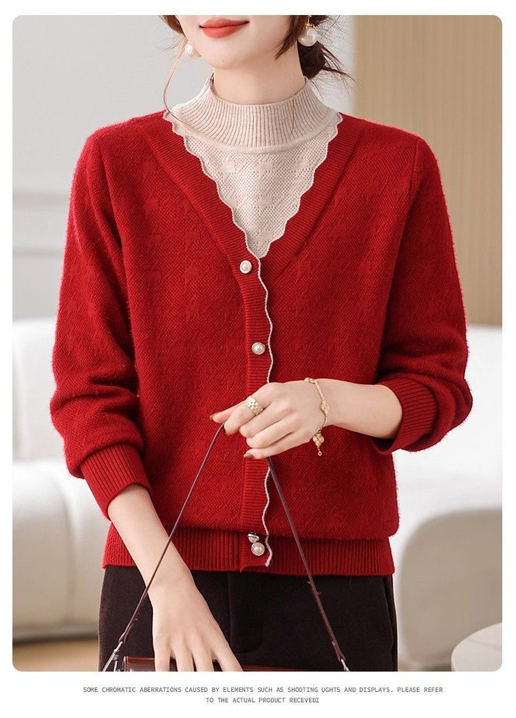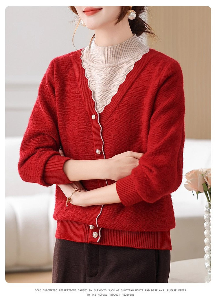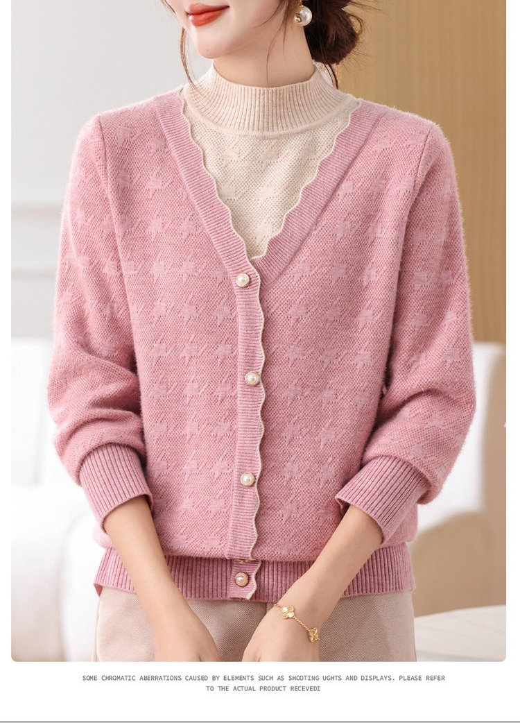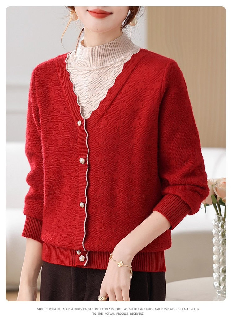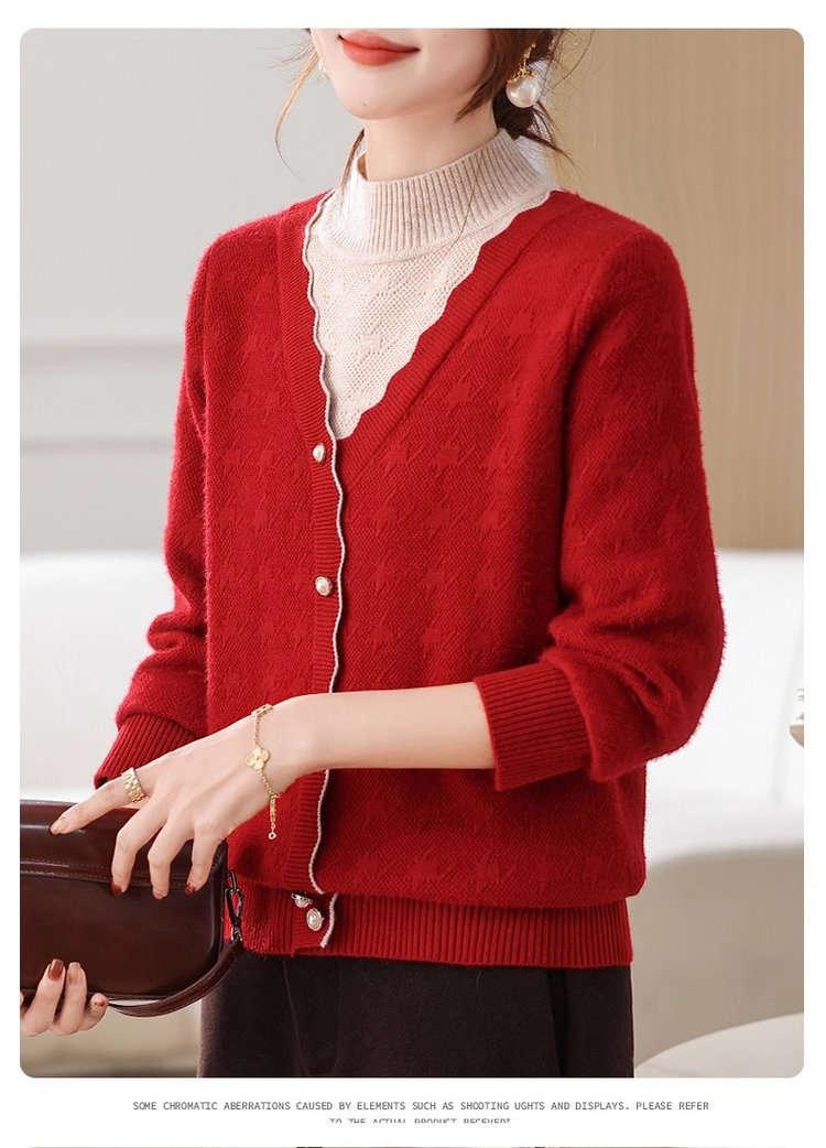 【俏墨冬装假两件中老年针织衫】👩这款妈妈装就是好的礼物🎁 ✅款式气质温柔,洋气百搭! ✅宽松版型,遮肉包容性强,上身利落有型!-MMTYS