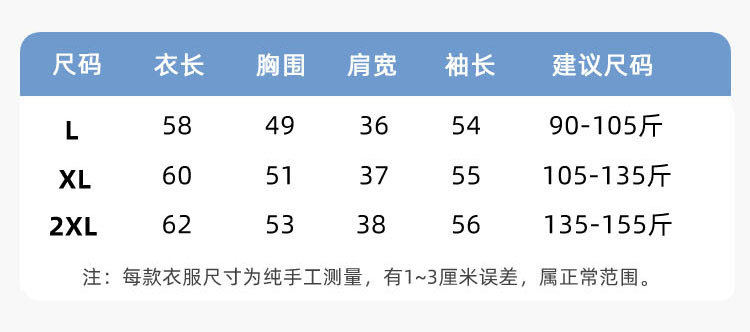 【尺码】L码(建议90-105斤),XL码(建议105-135斤),2XL码(建议135-155斤)