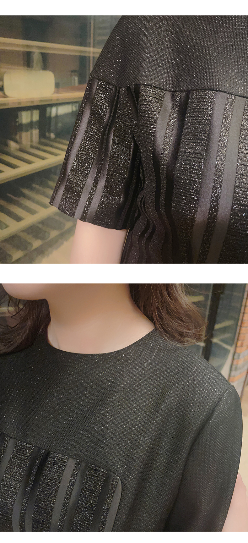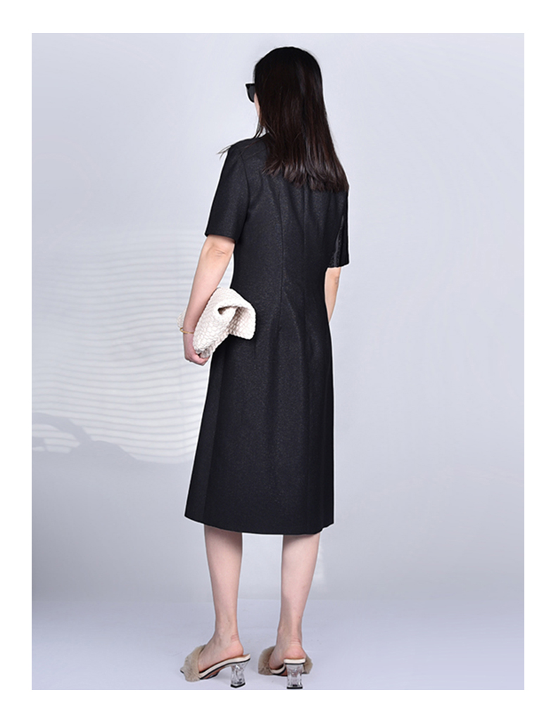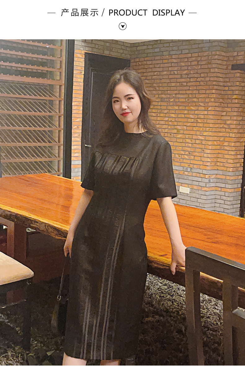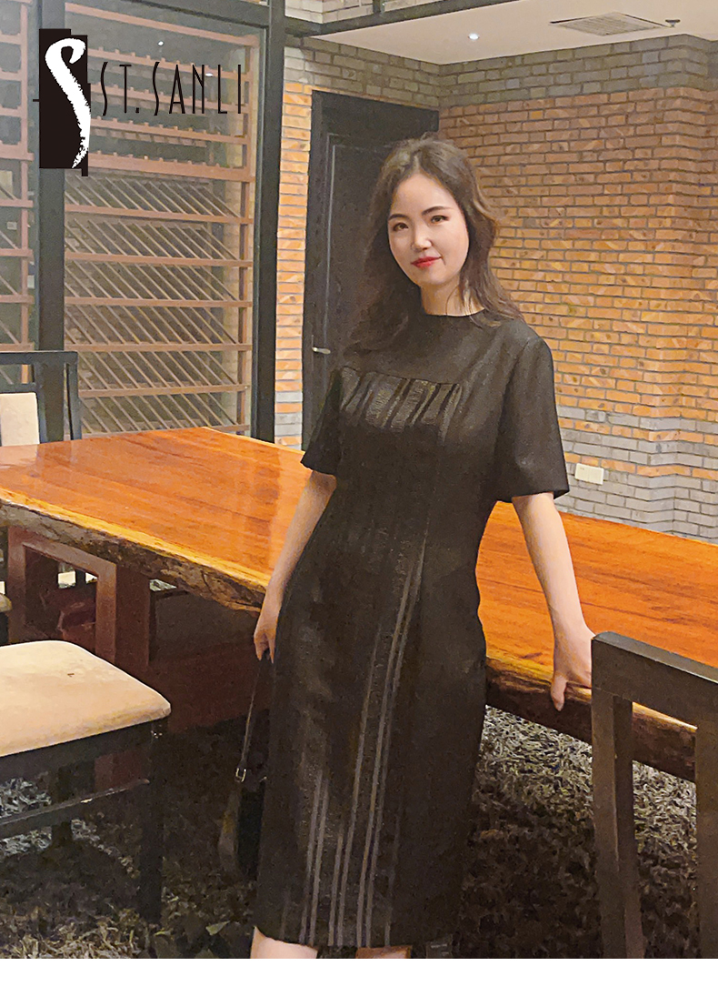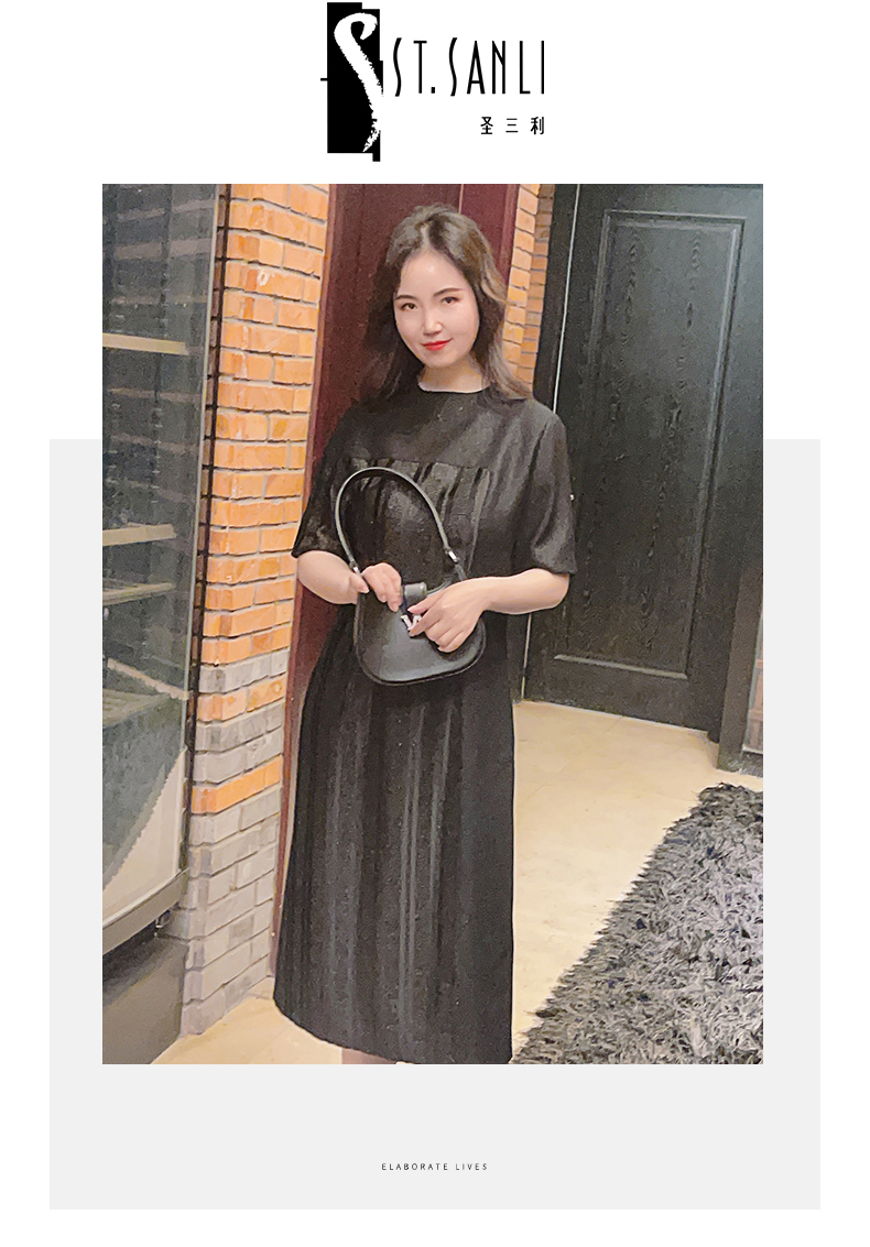圣三利女装 新品条纹拼接暗纹提花中长款连衣裙SL2037109