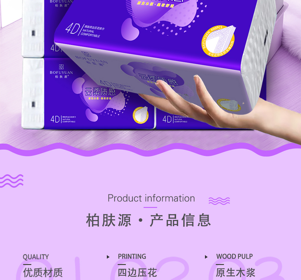 柏肤源 40卷加厚九斤五层带印花卫生纸