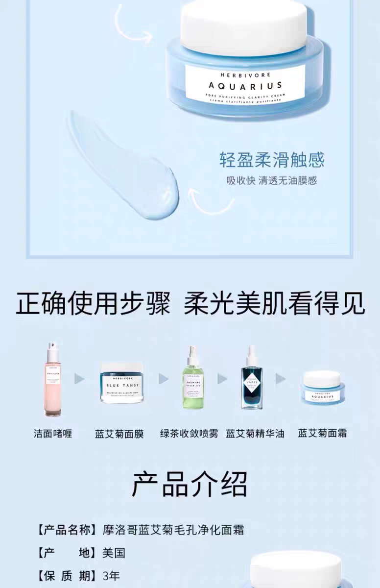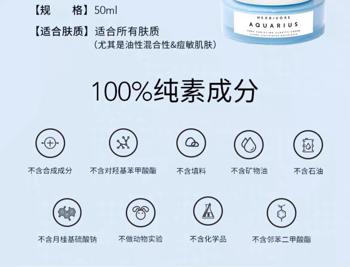 【品名】美国 Herbivore蓝艾菊水瓶座平衡面霜50ml