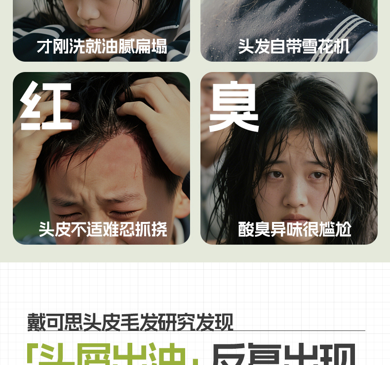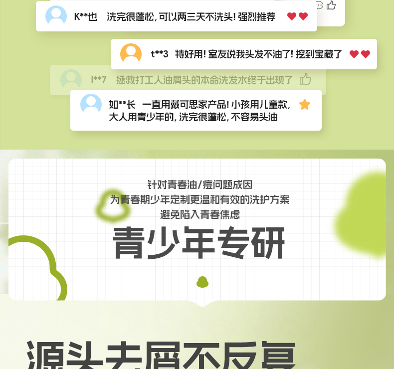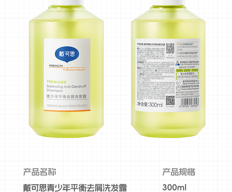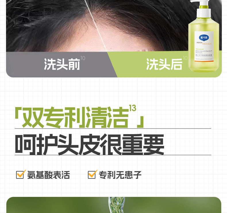 【青少年去屑洗发推荐】戴可思 青少年平衡去屑洗发露 改善头皮头痒 控油蓬松