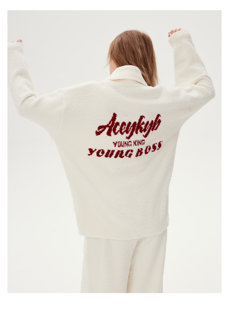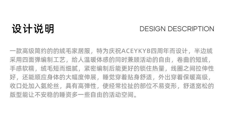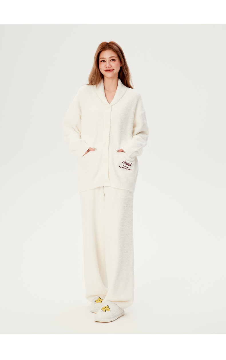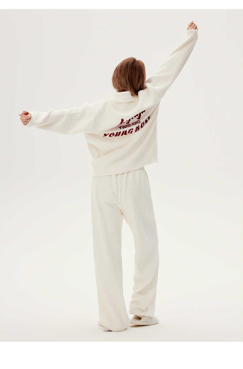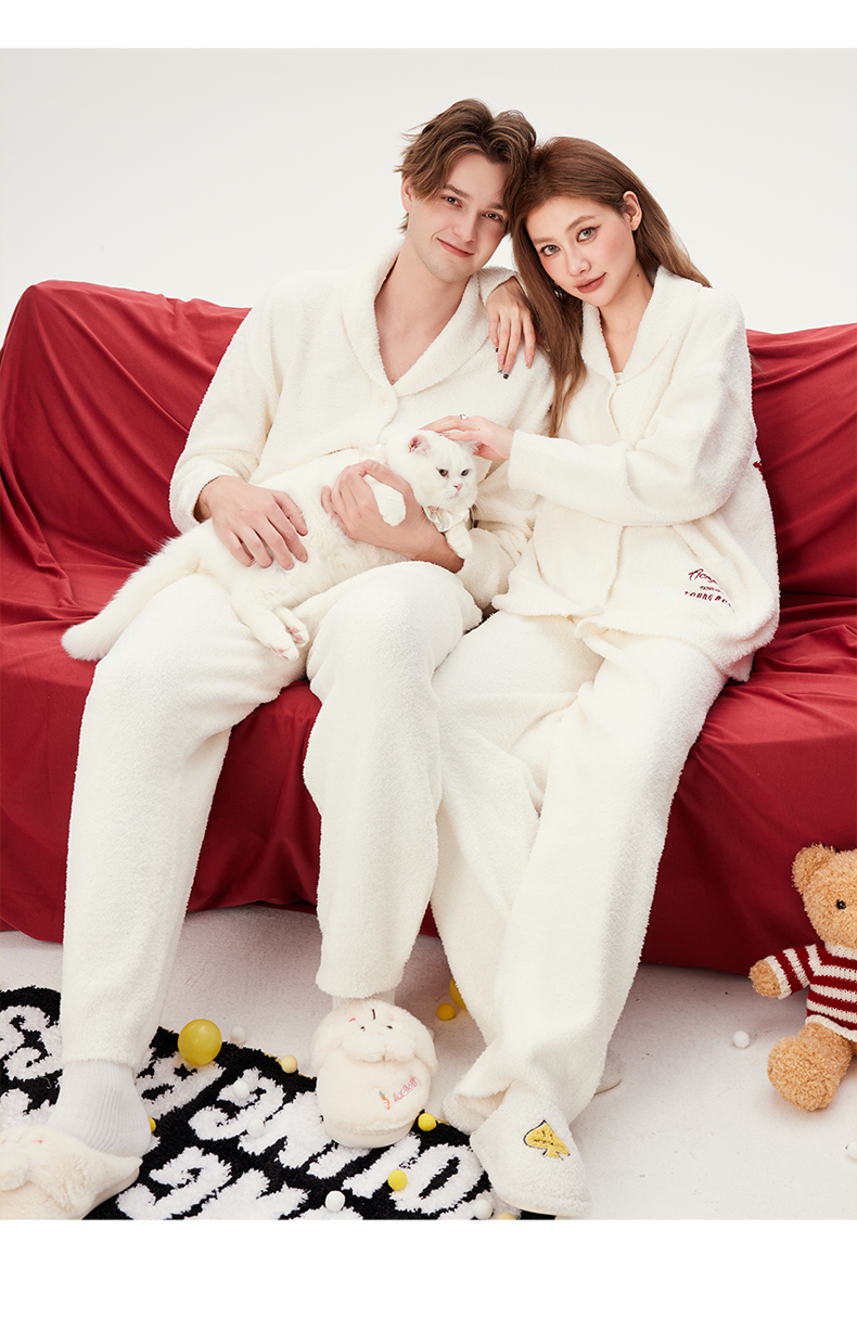 YKYB简约舒适保暖高弹宽松绒毛情侣家居服睡衣