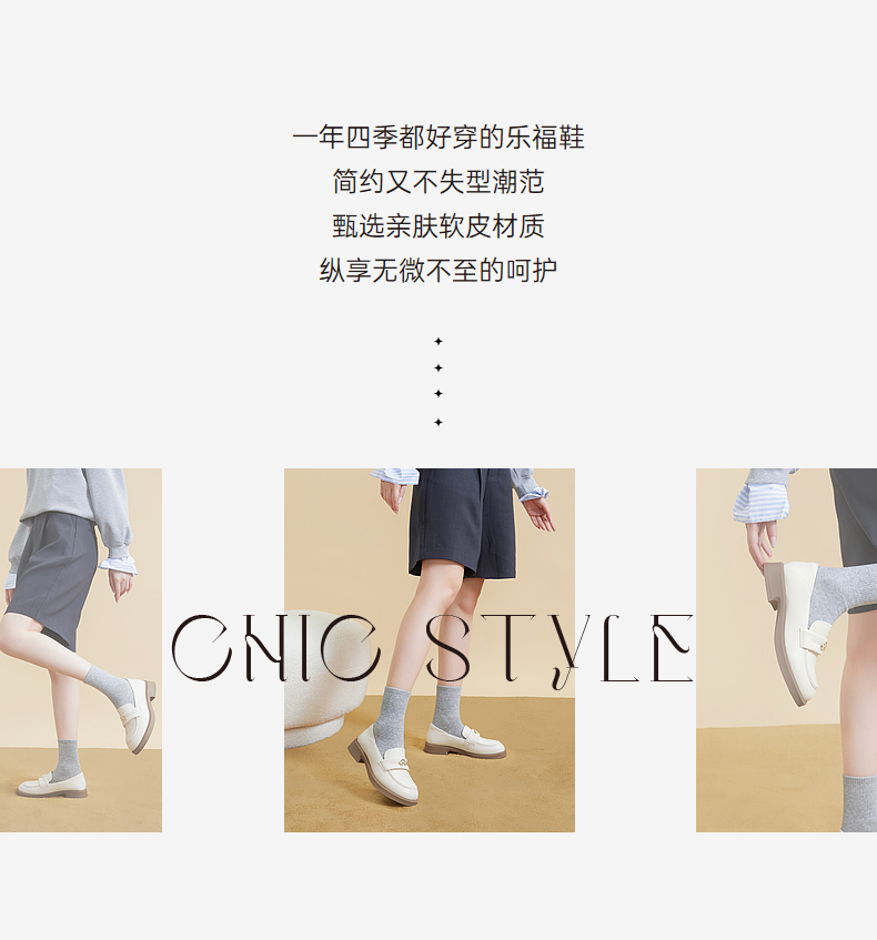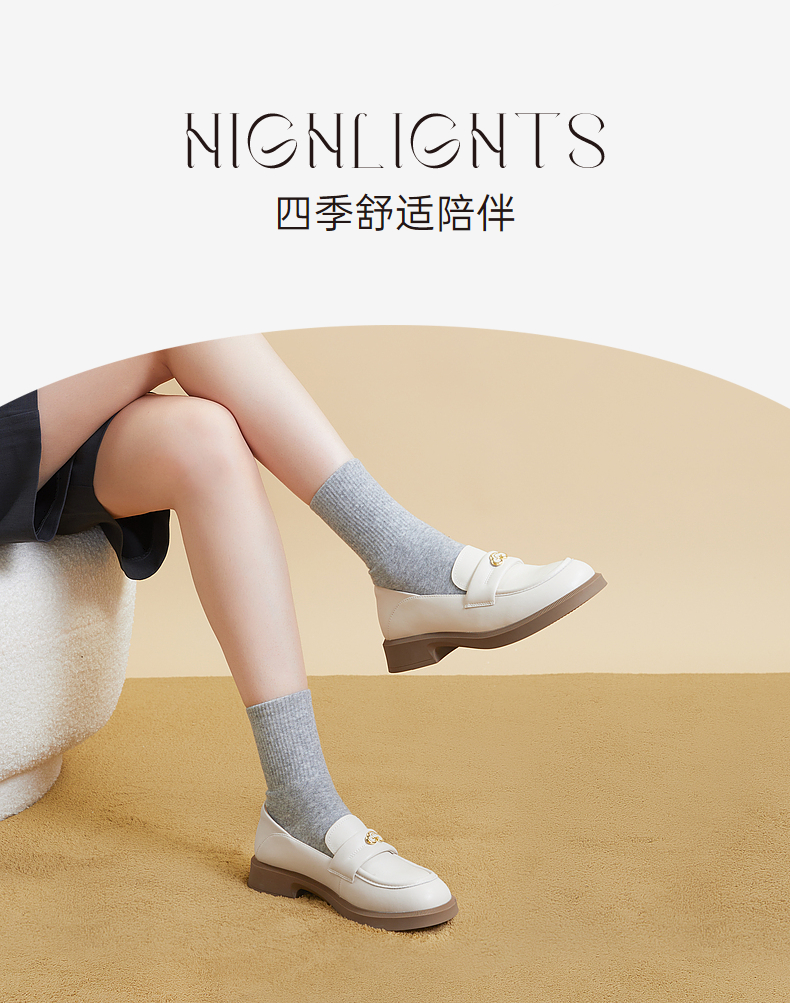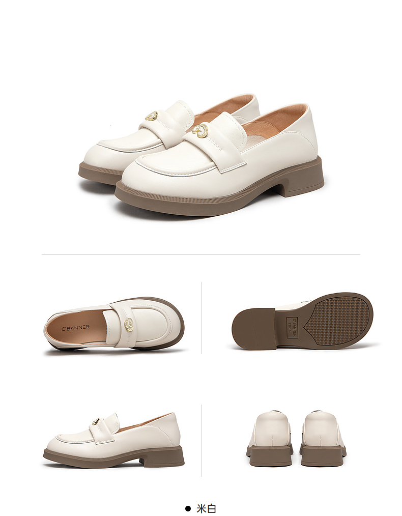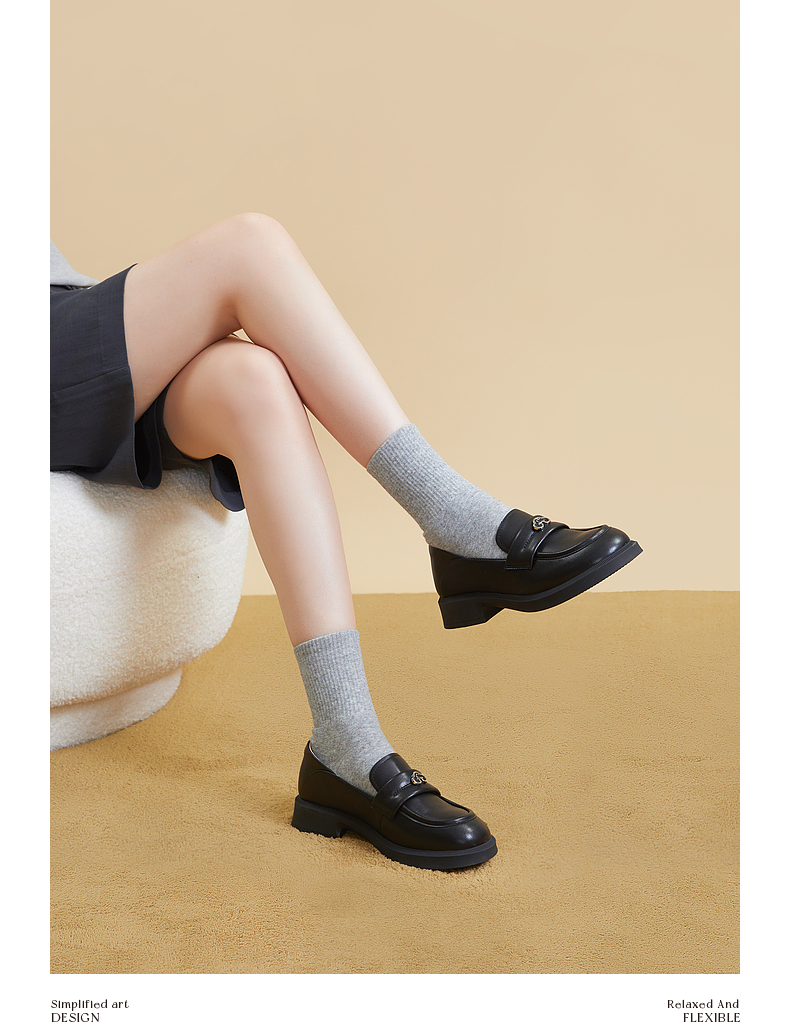 千百度黑色乐福鞋女秋季正装通勤英伦风小皮鞋一脚蹬鞋子A23431835