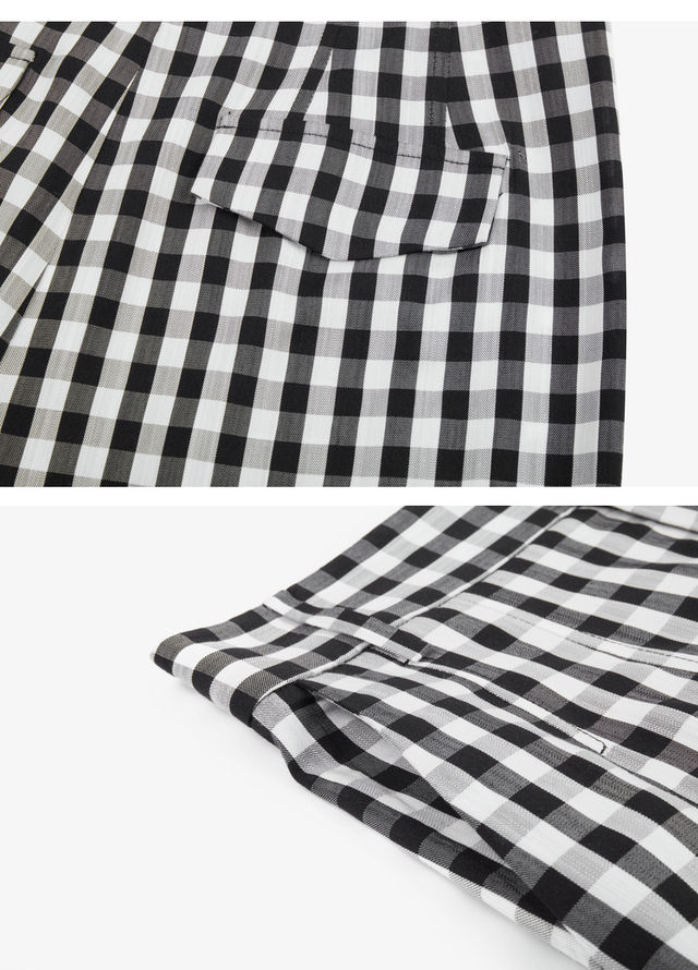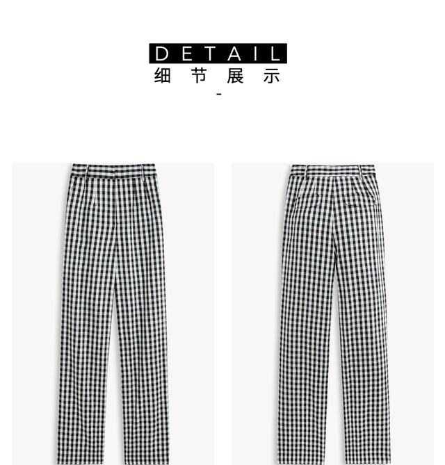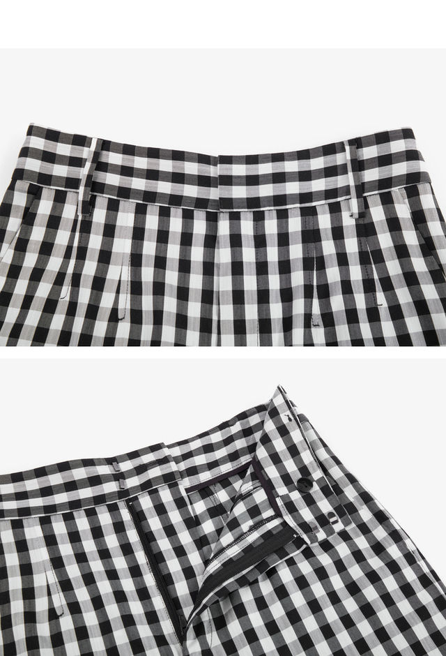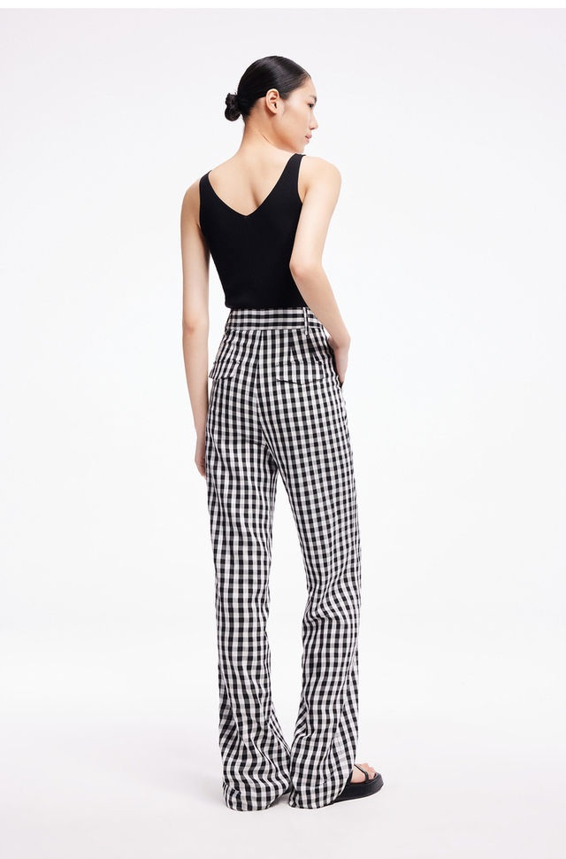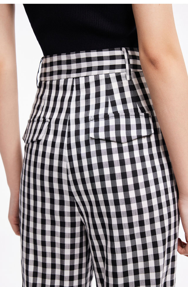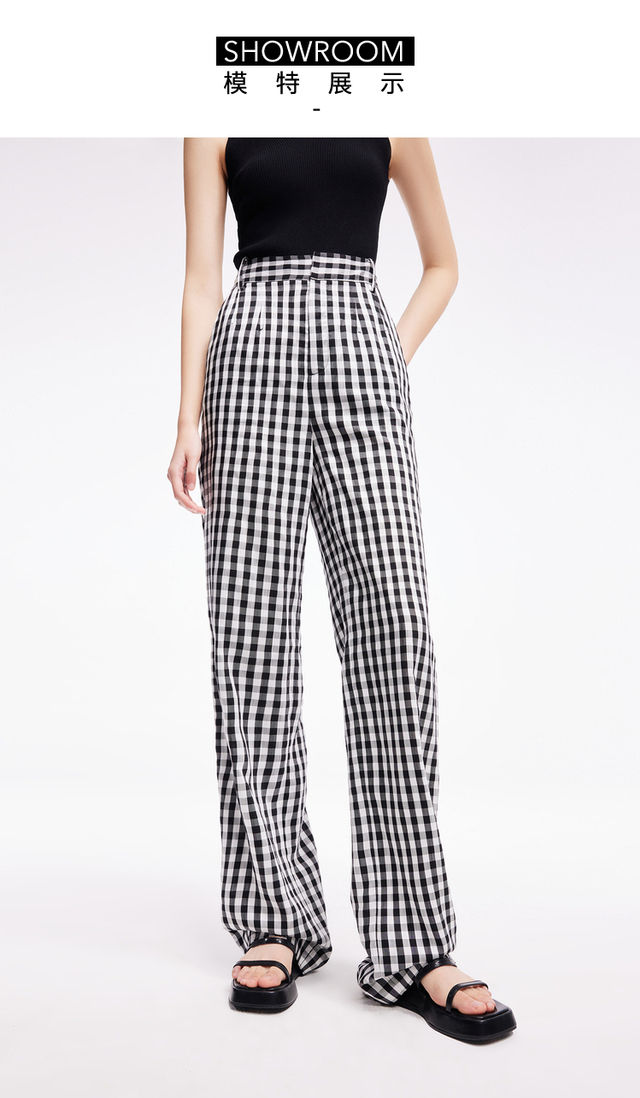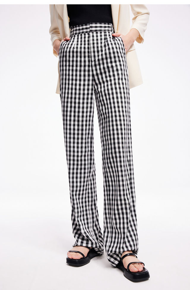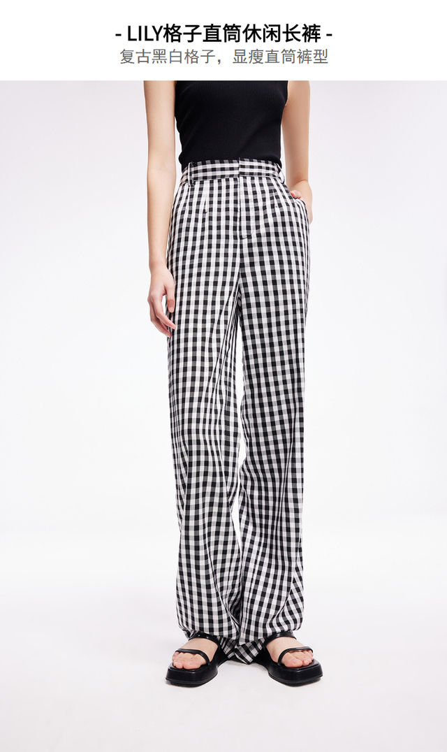 LILY2022夏新款女装时尚气质格子显瘦高腰直筒休闲裤122240C5140