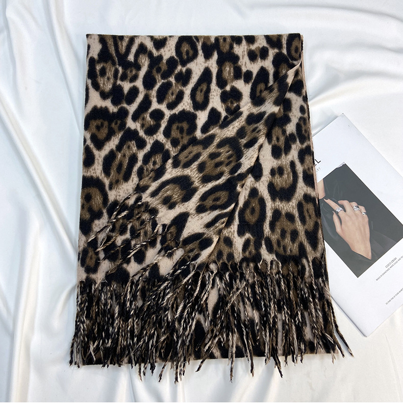 豹纹围巾女秋冬经典加厚仿羊绒印花流苏披肩欧美百搭保暖围脖新款新品 商品图0