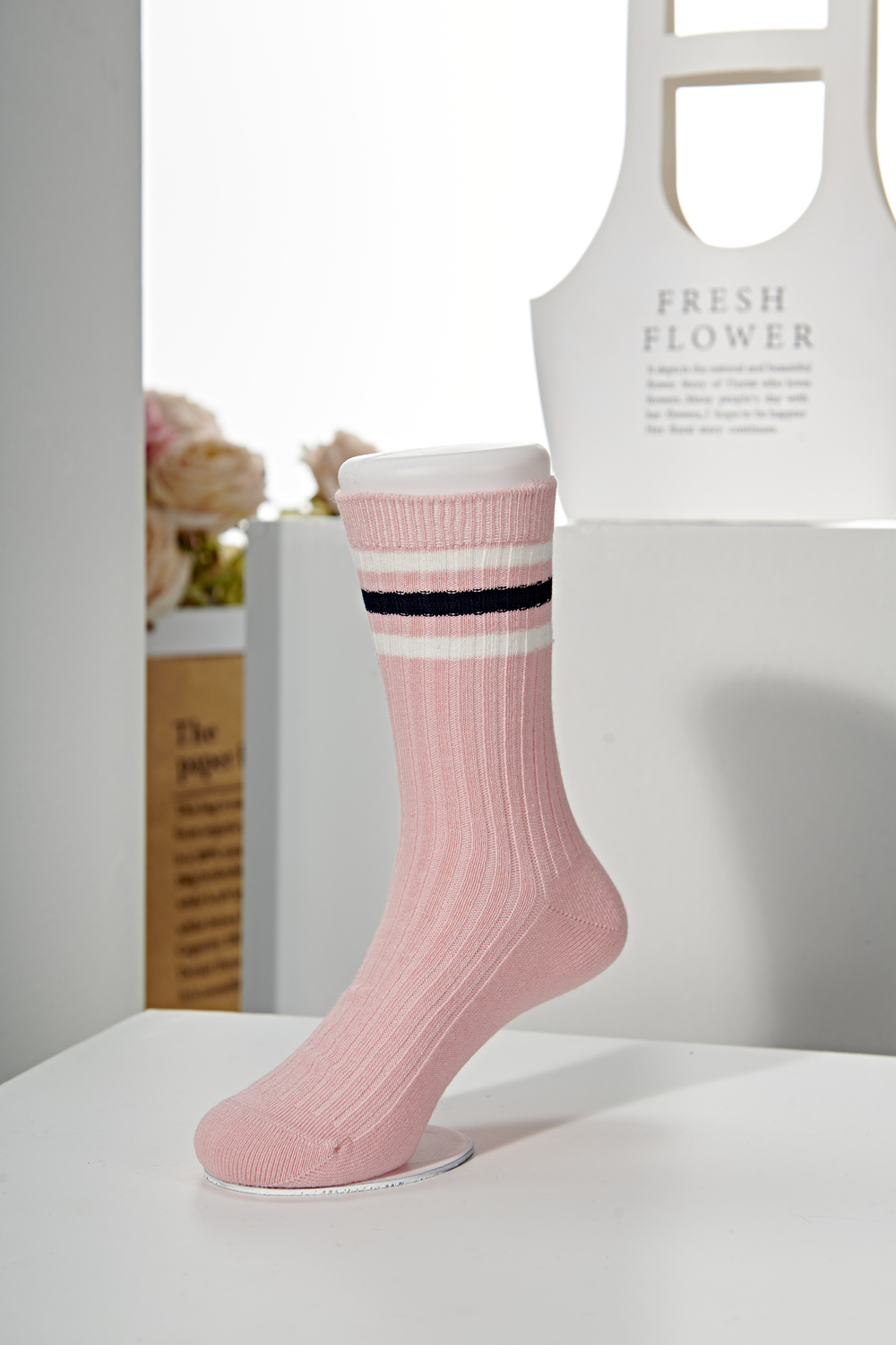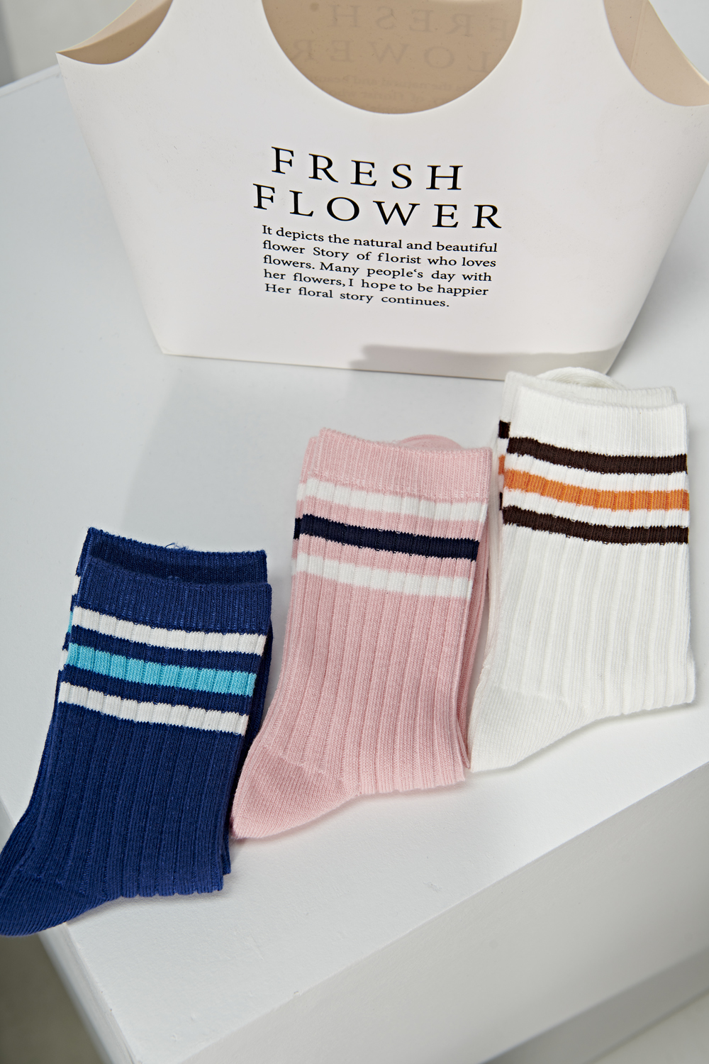 【2双装 6双6折】大童双针条纹中长筒无骨精梳棉袜吸汗透气防臭【2323202】