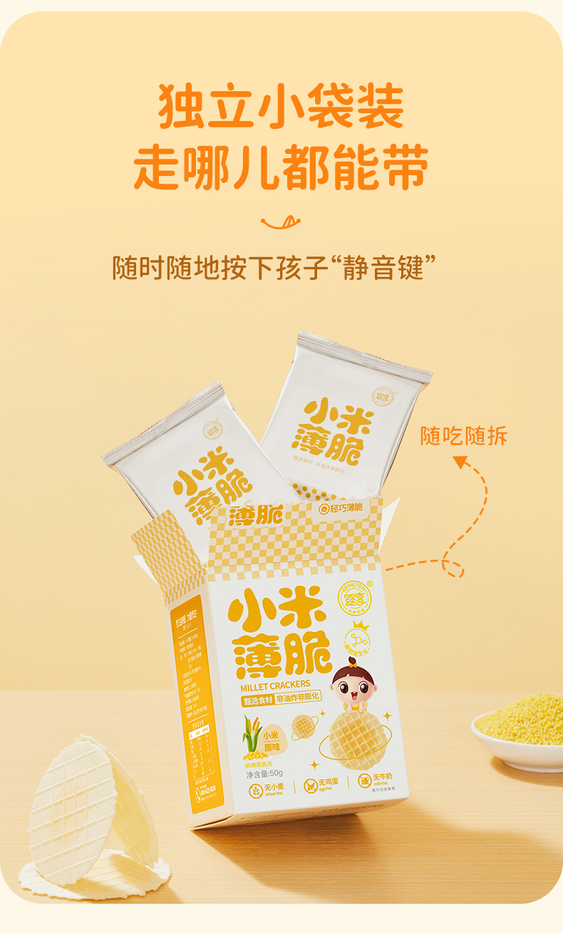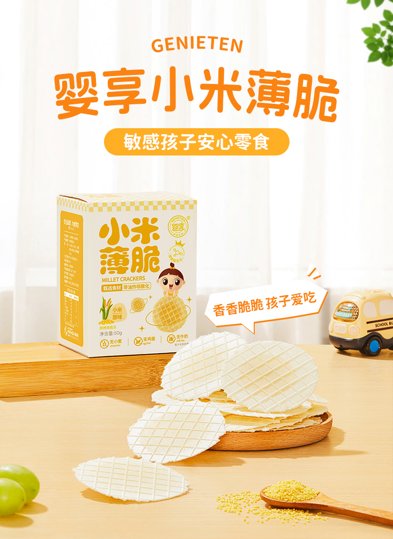 婴享无小麦无蛋奶小米薄脆敏感孩子休闲零食营养饼干送婴幼儿敏宝辅食电子食谱