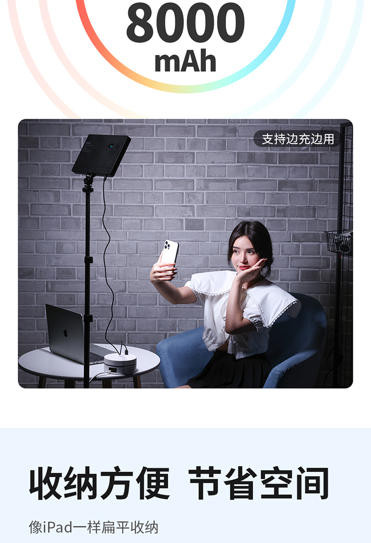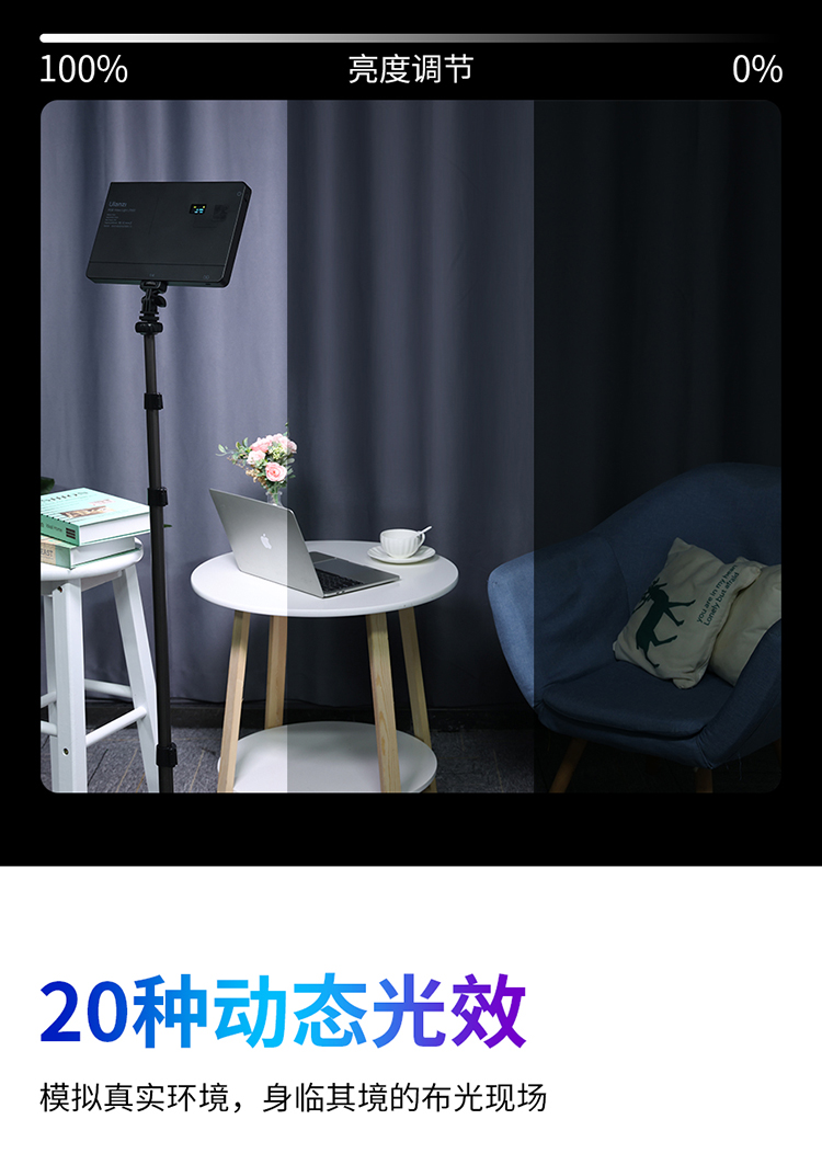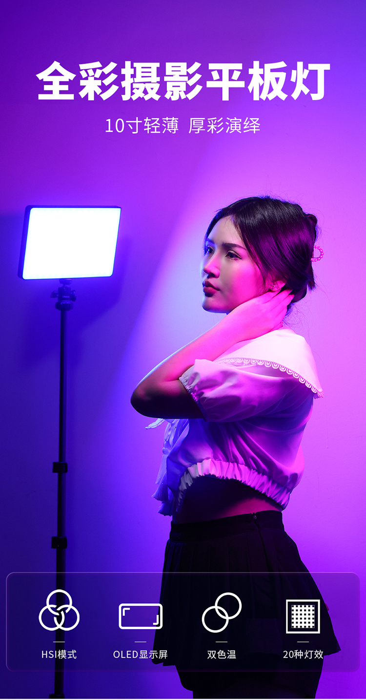 Ulanzi优篮子LT003全彩RGB补光灯平板摄影灯led桌面平板灯彩色拍照摄像口袋摄影外拍便携户外柔光灯探店直播