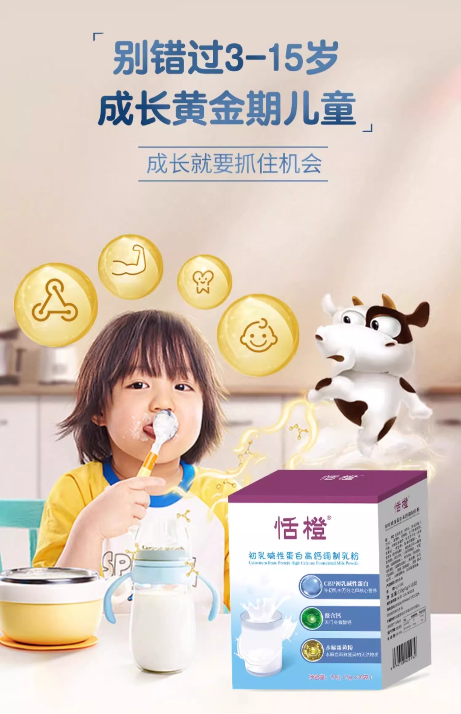 恬橙初乳碱性蛋白高钙调制乳粉4g*30袋(3岁以上适用)