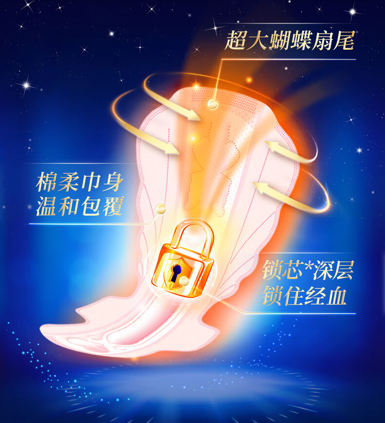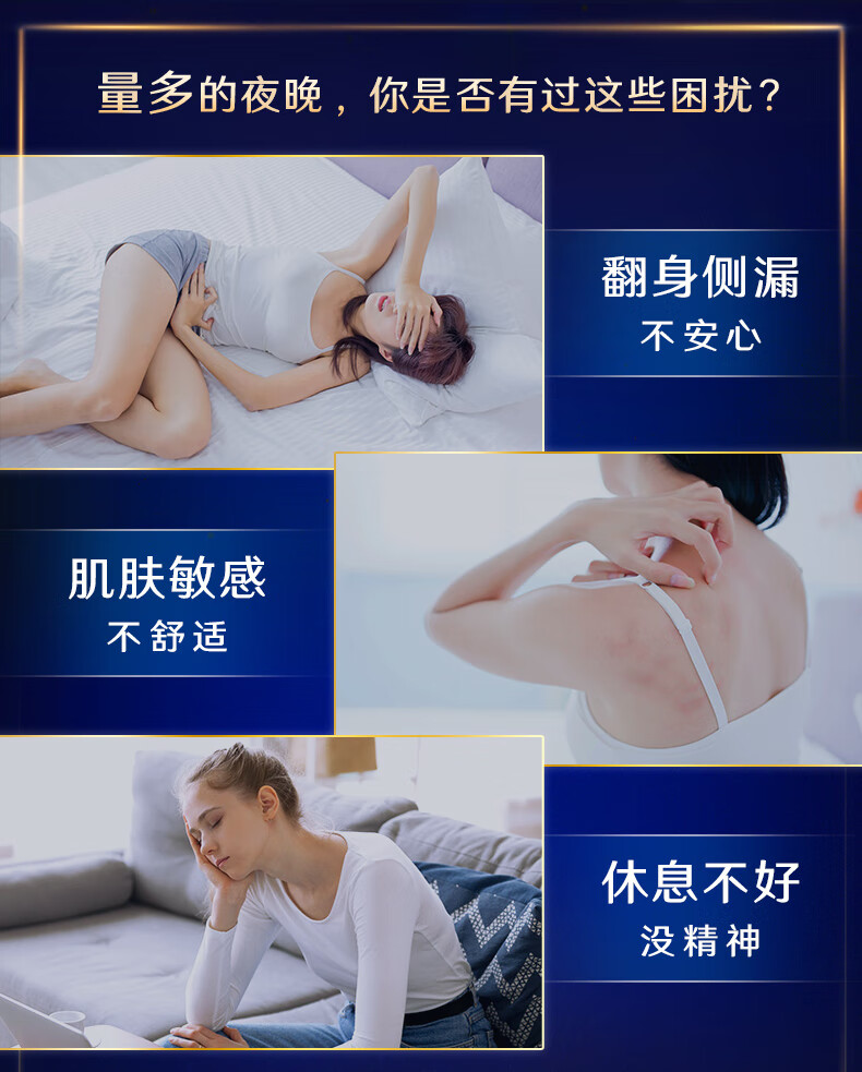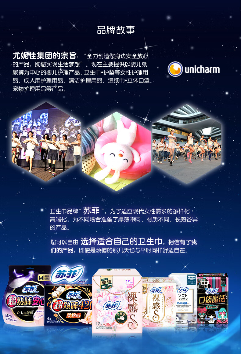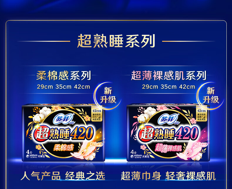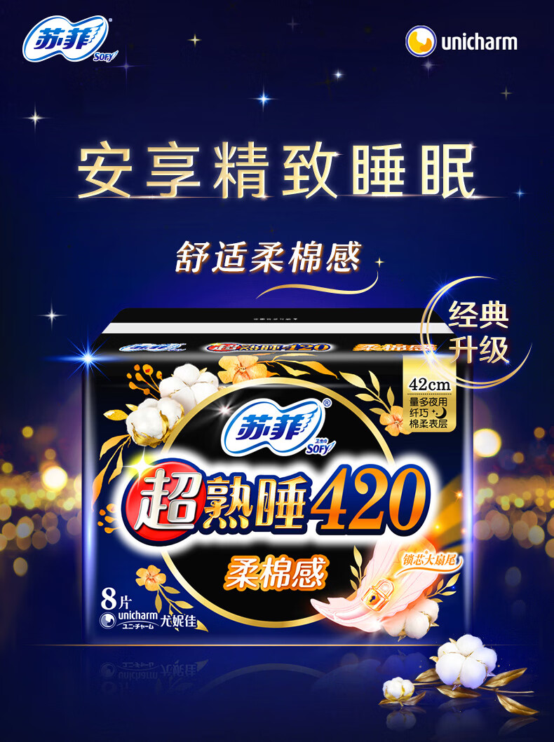 苏菲超熟睡柔棉感超长夜用卫生巾420mm8片加大尾扇量多防渗漏姨妈巾 851324