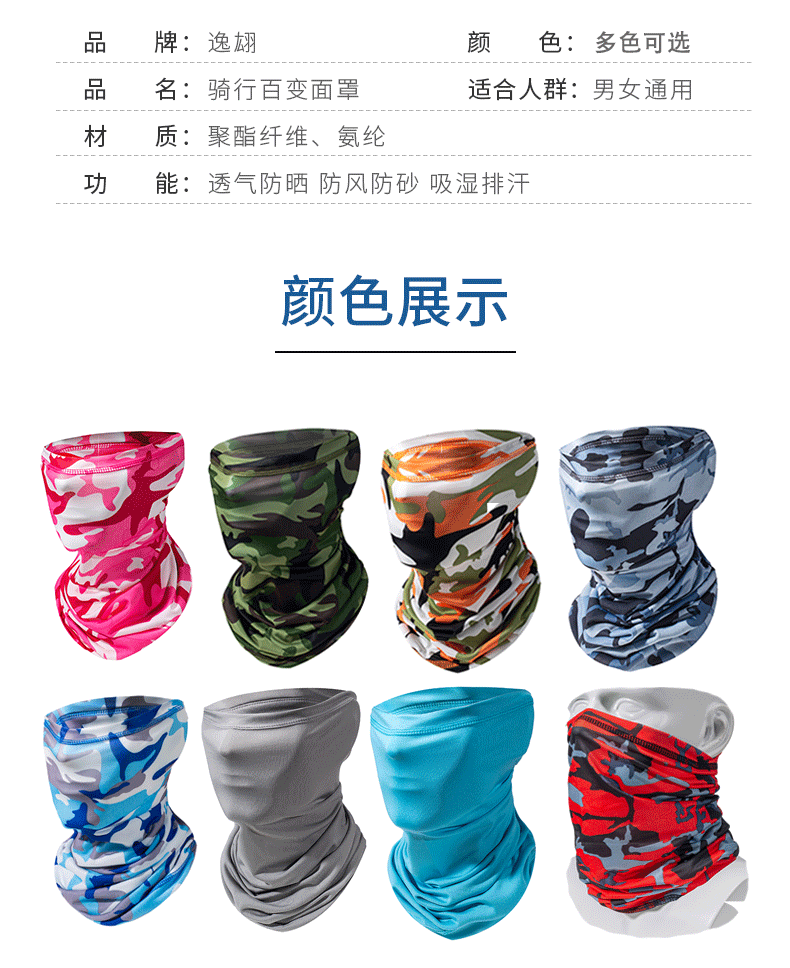 【买1送1发2 男女防晒冰丝头巾】自行车骑行户外登山钓鱼魔术面巾多功能骑行围脖面罩