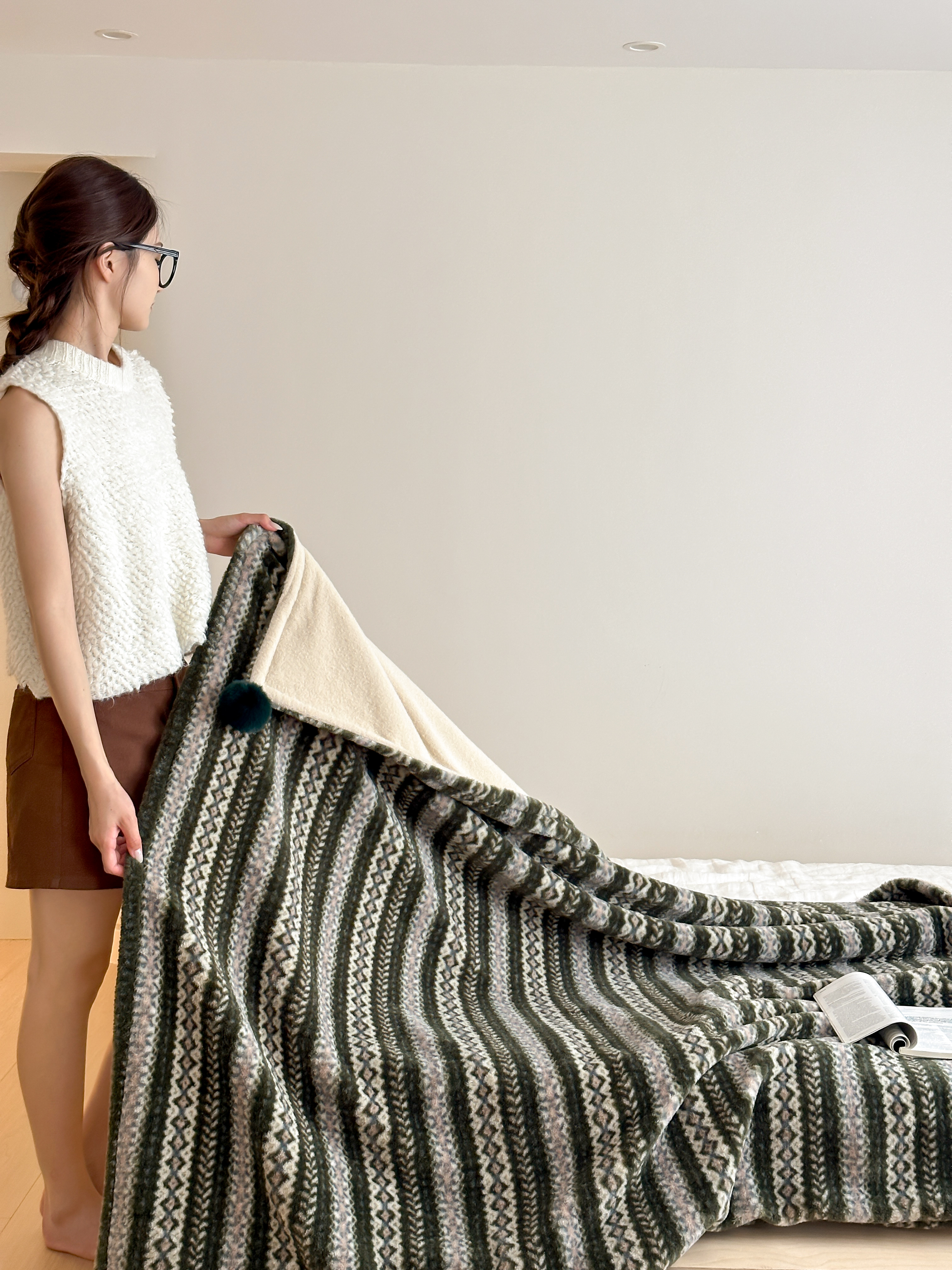 费尔岛双面盖毯午睡毯沙发毯床尾毯车载毯子