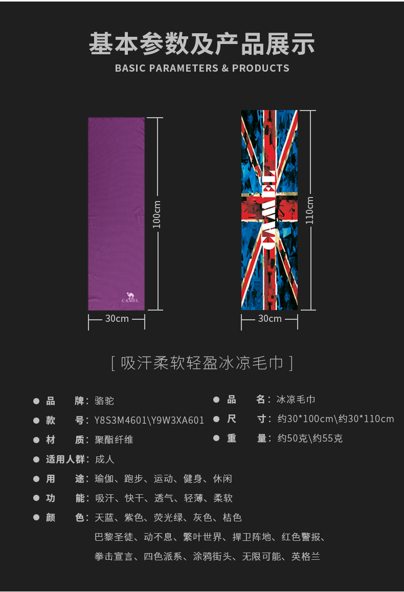【大转盘】骆驼运动毛巾吸汗速干毛巾健身房专业冷感冰凉巾男女瑜伽擦汗冰巾Y8S3M4601