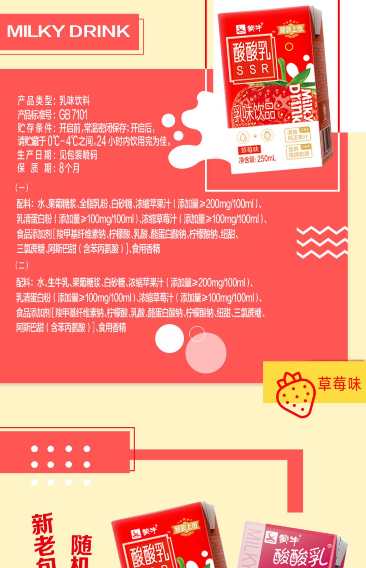 酸酸乳 营养乳味 饮品 草莓味 250mL*24包 送礼 礼盒 包邮