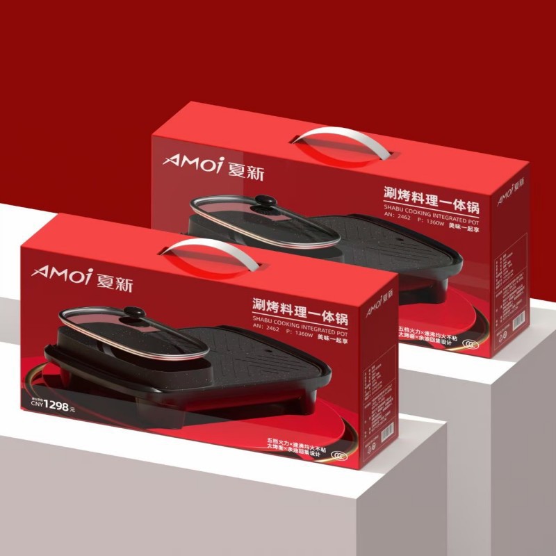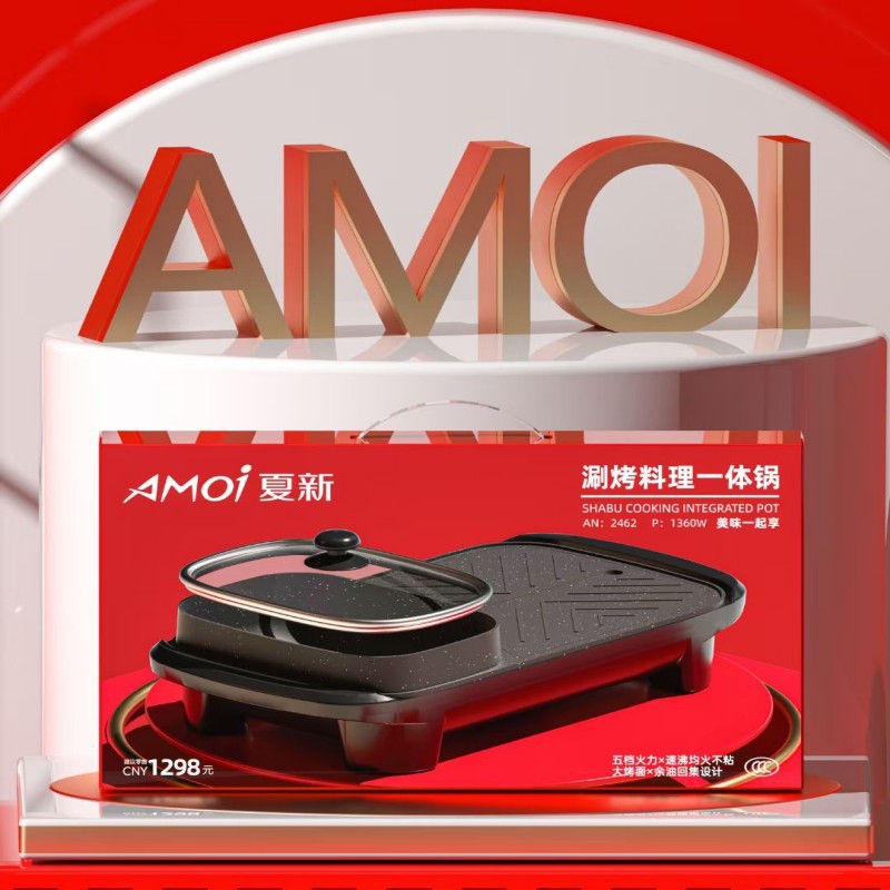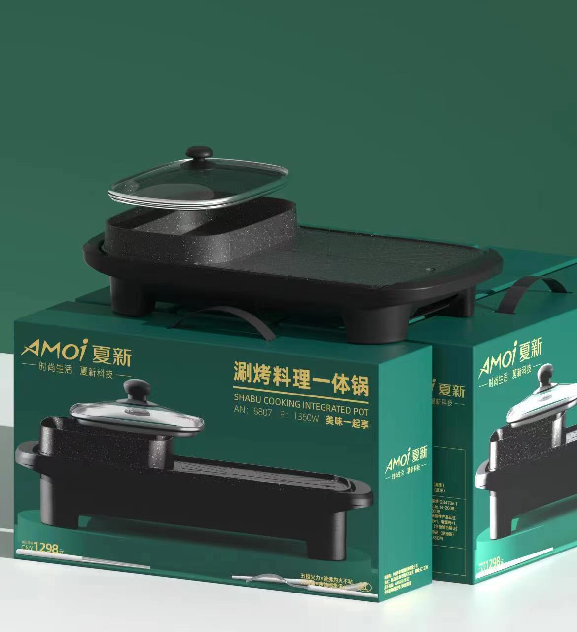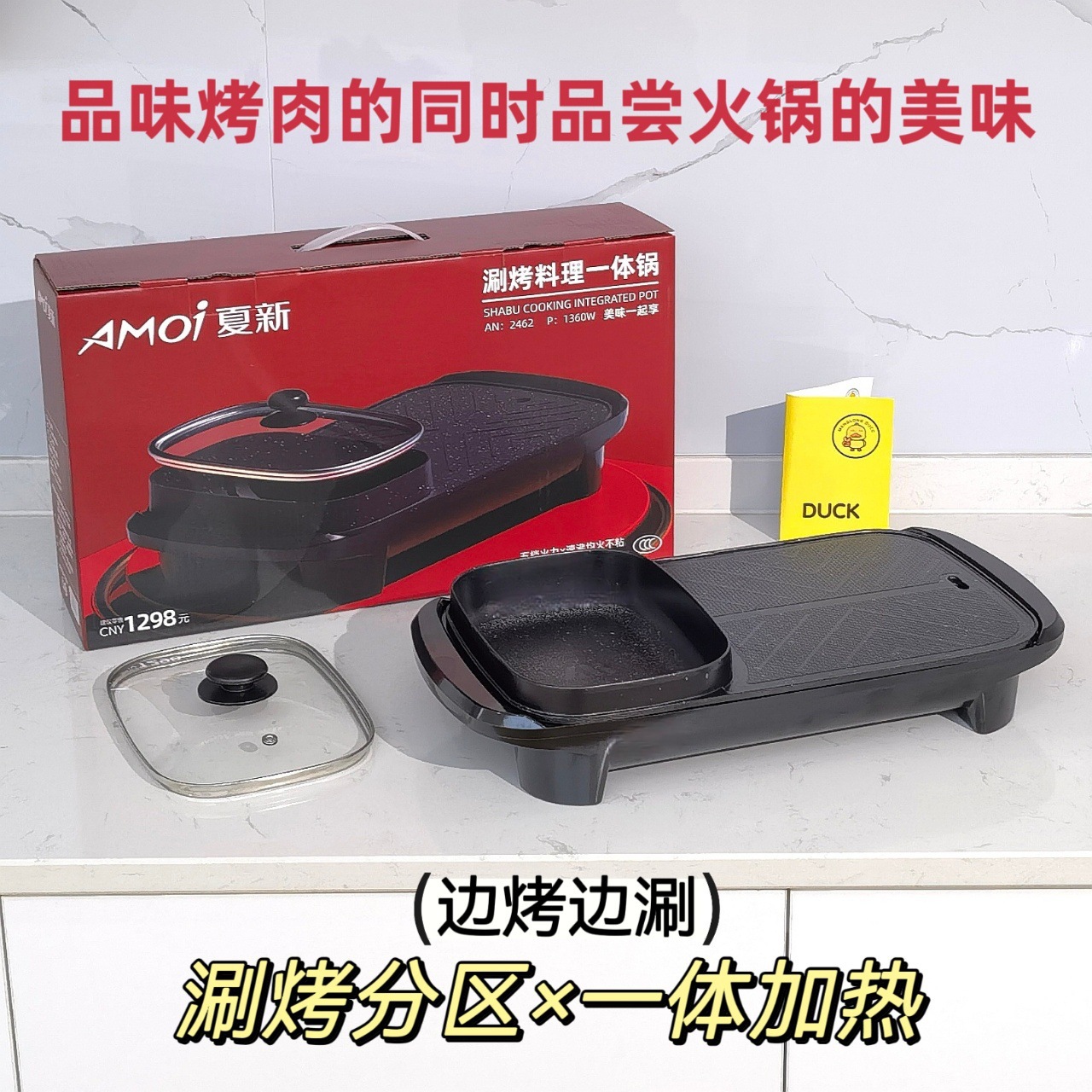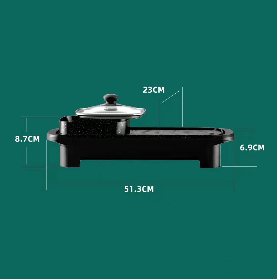 【涮烤两相宜!多功能煎烤锅】快速加热,省时省电。烤一体锅家用电火锅长形涮烤锅不沾烤肉烤涮锅