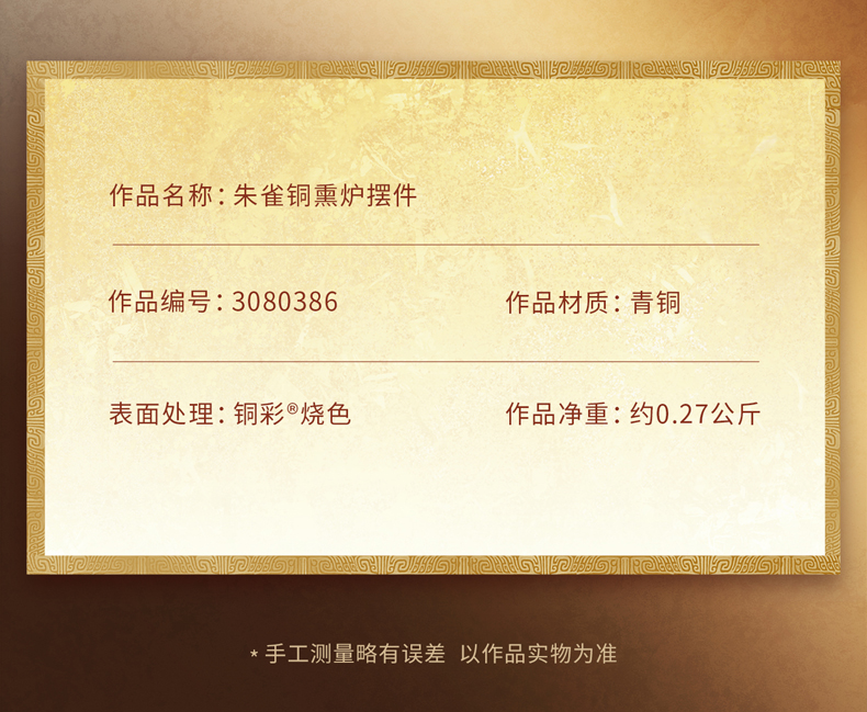 铜师傅 陕西历史博物馆系列《朱雀铜熏炉摆件》仿古青铜器纪念品