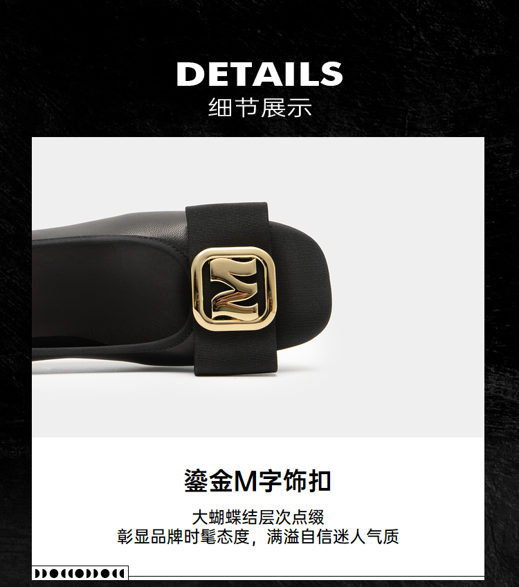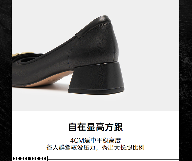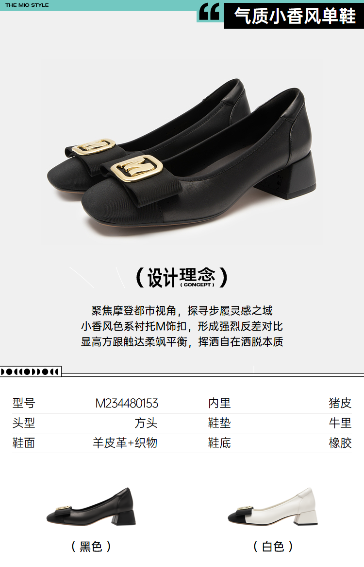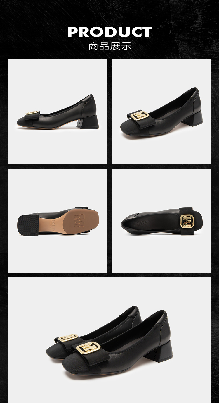 MIO米奥通勤浅口鞋方头粗跟小皮鞋字母高跟舒适单鞋女鞋低帮鞋M234480153