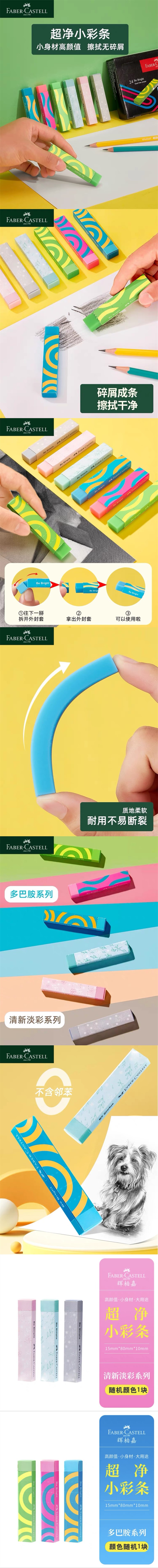 辉柏嘉超净橡皮擦 长条彩色少屑像皮擦 儿童无屑擦字成线橡皮擦象皮橡皮颜色随机1条