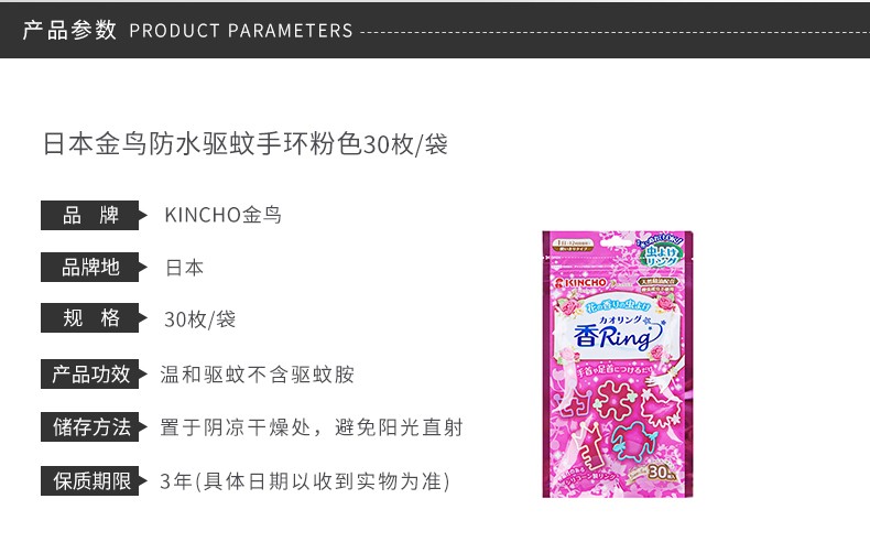 金鸟 防水驱蚊手环30个/包 粉色/蓝色