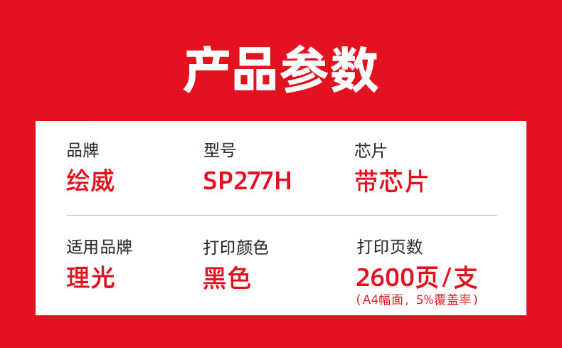 绘威SP277H硒鼓 适用理光Ricoh SP 277NWX 277SNWX 277SFNWX打印机墨盒 粉盒 墨粉盒 碳粉盒