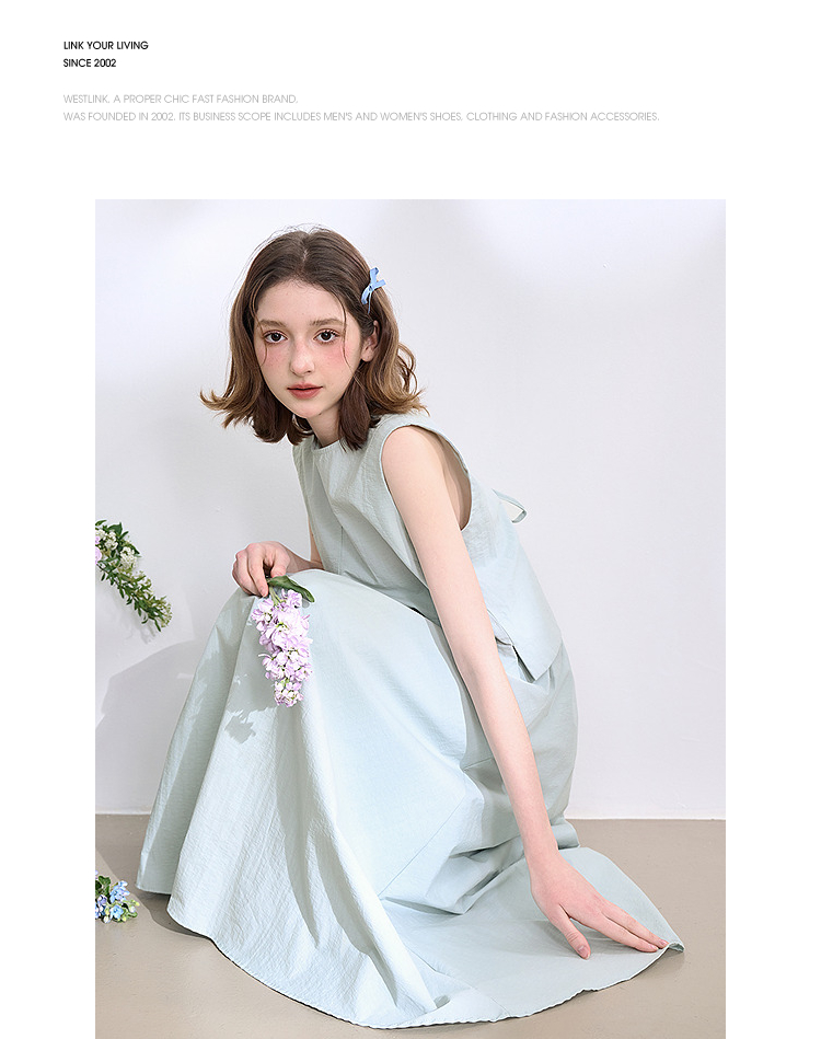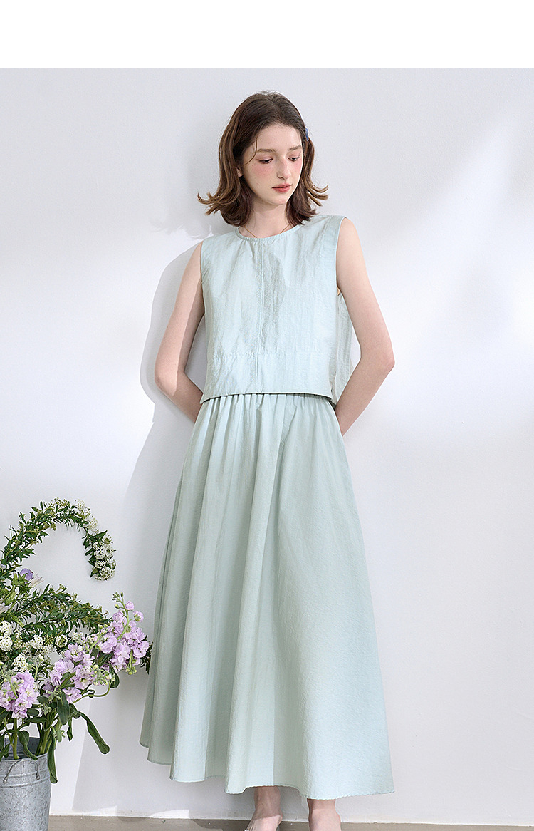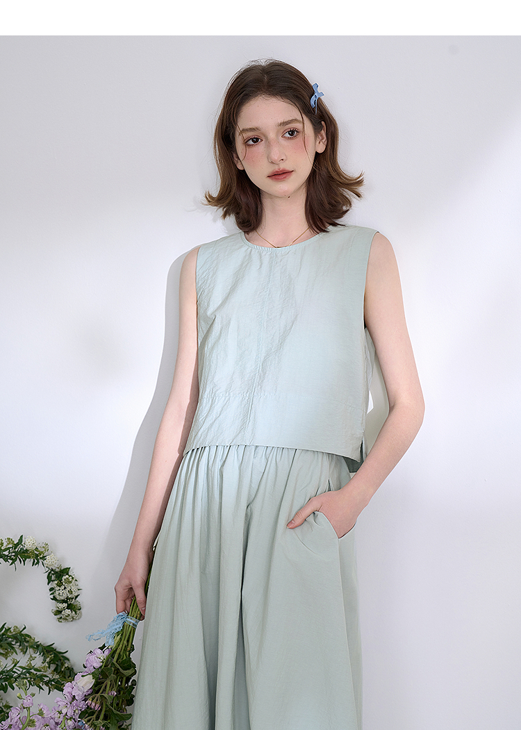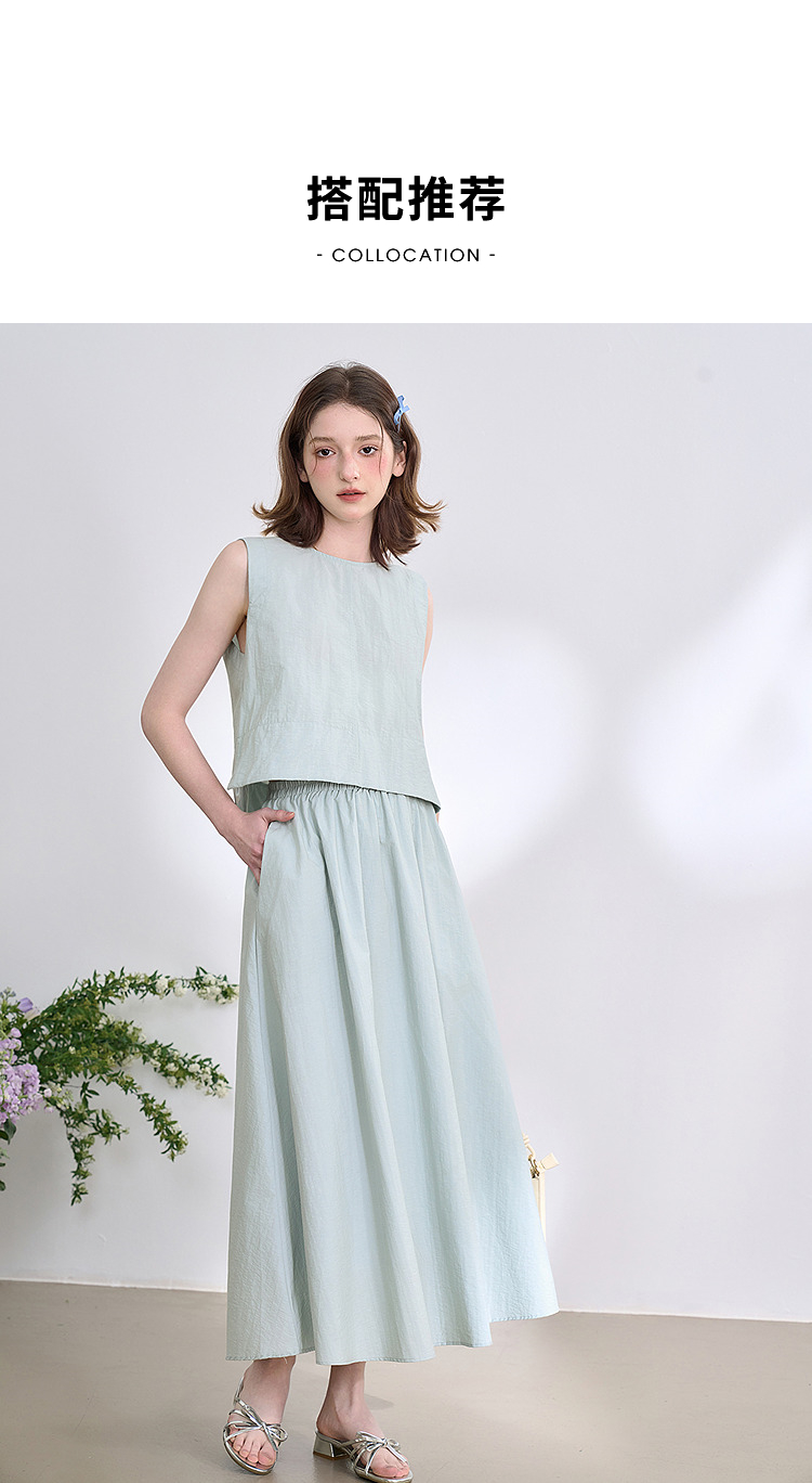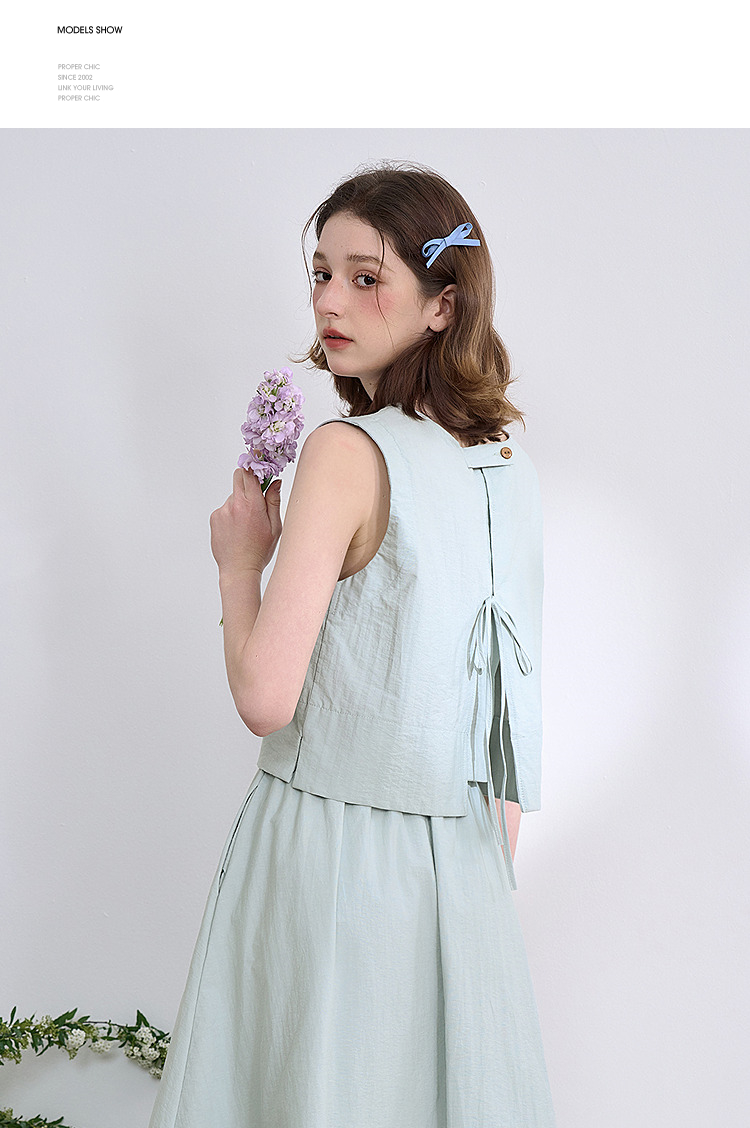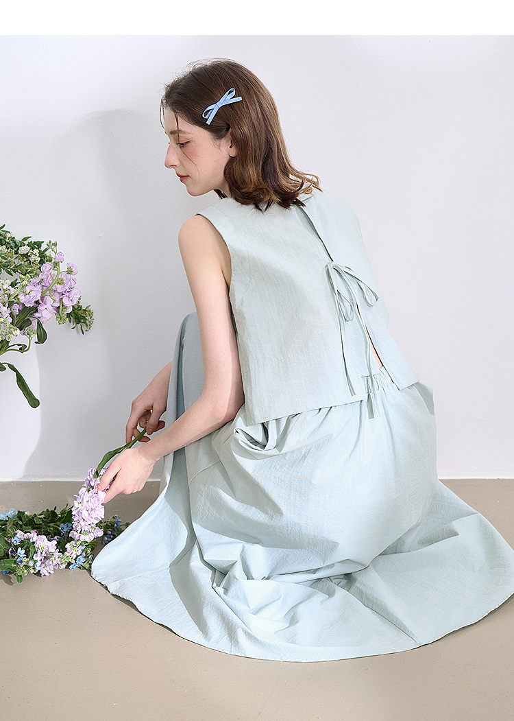法式文艺风套装女春夏设计感后背绑带马甲搭半裙两件套V0050630
