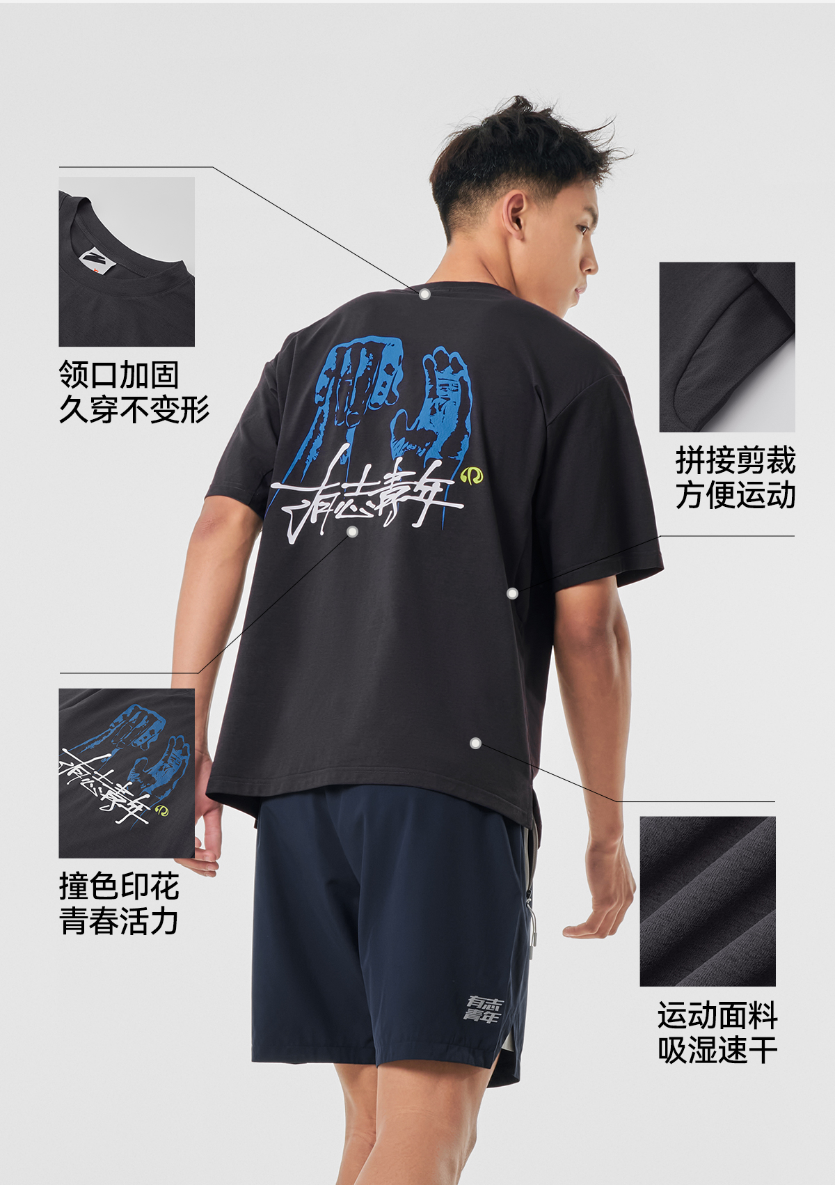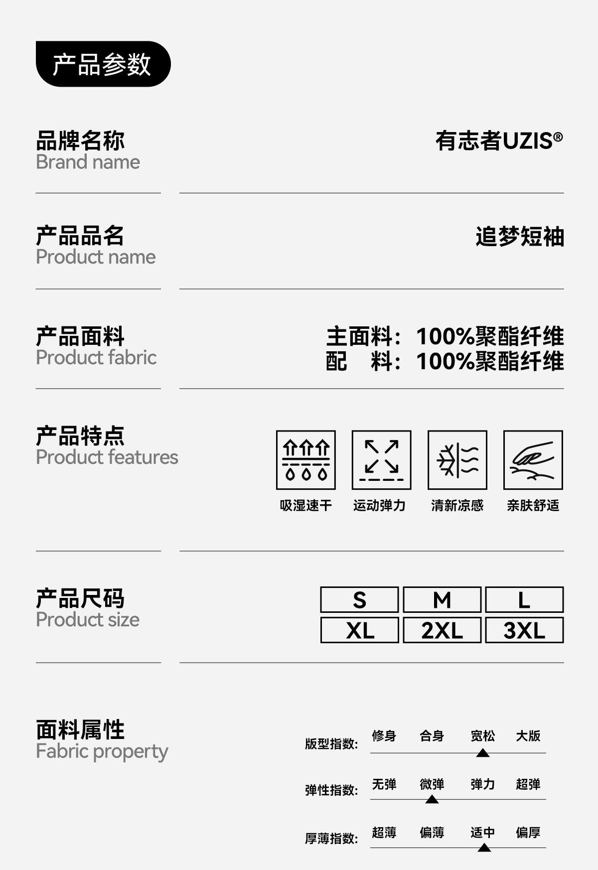 张宁同款 有志者UZIS运动短袖男新款速干健身跑步有志青年T恤追梦