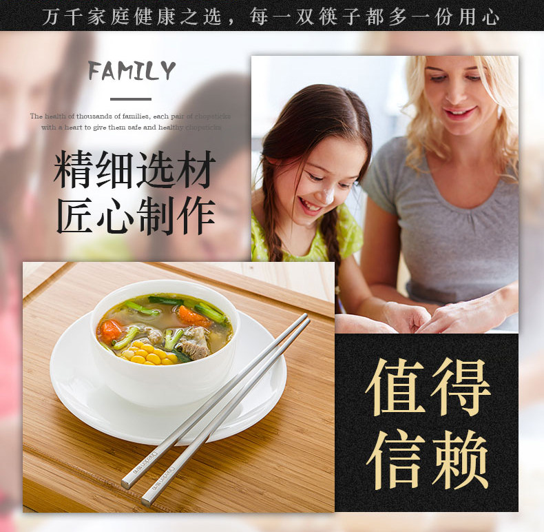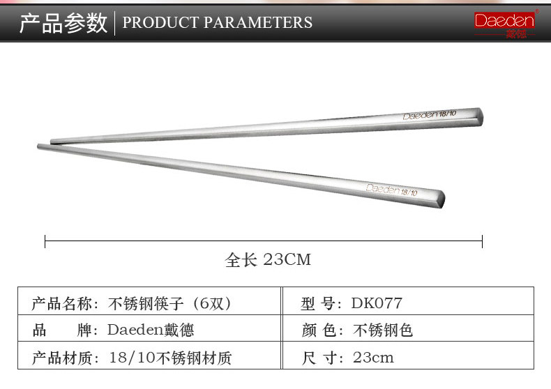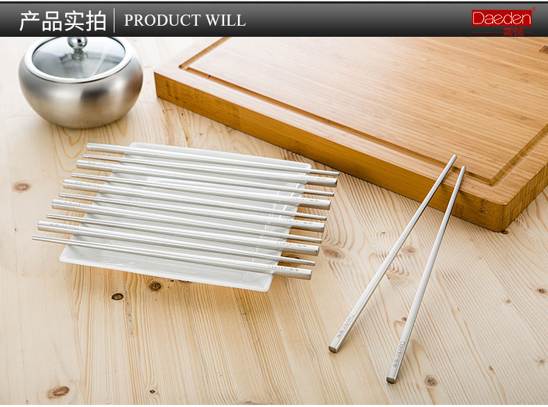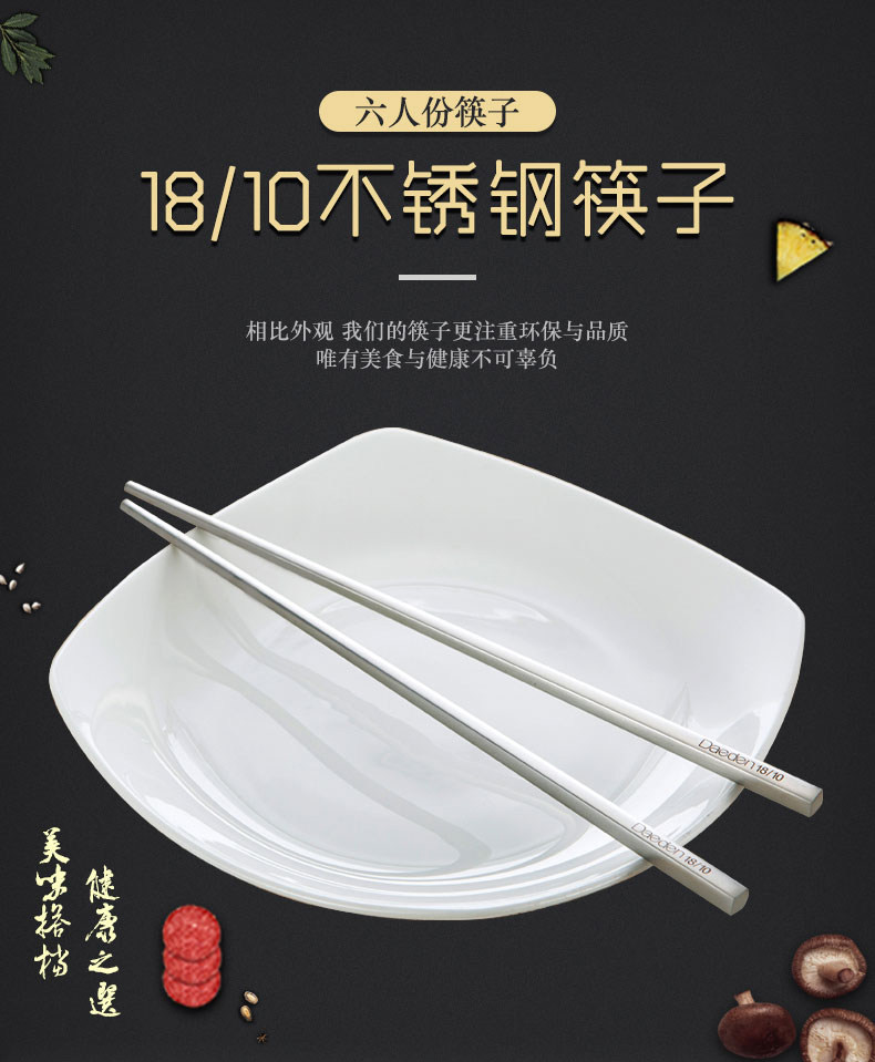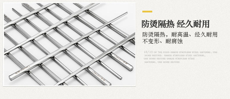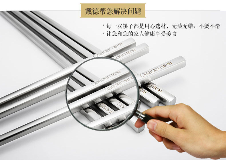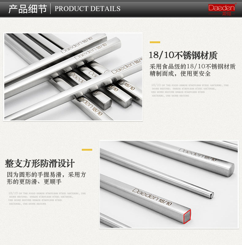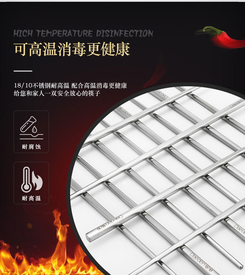 【德国戴德不锈钢筷子6双盒装】戴德 18/10不锈钢筷子家用防滑抗菌不生锈方形筷子6双家庭装