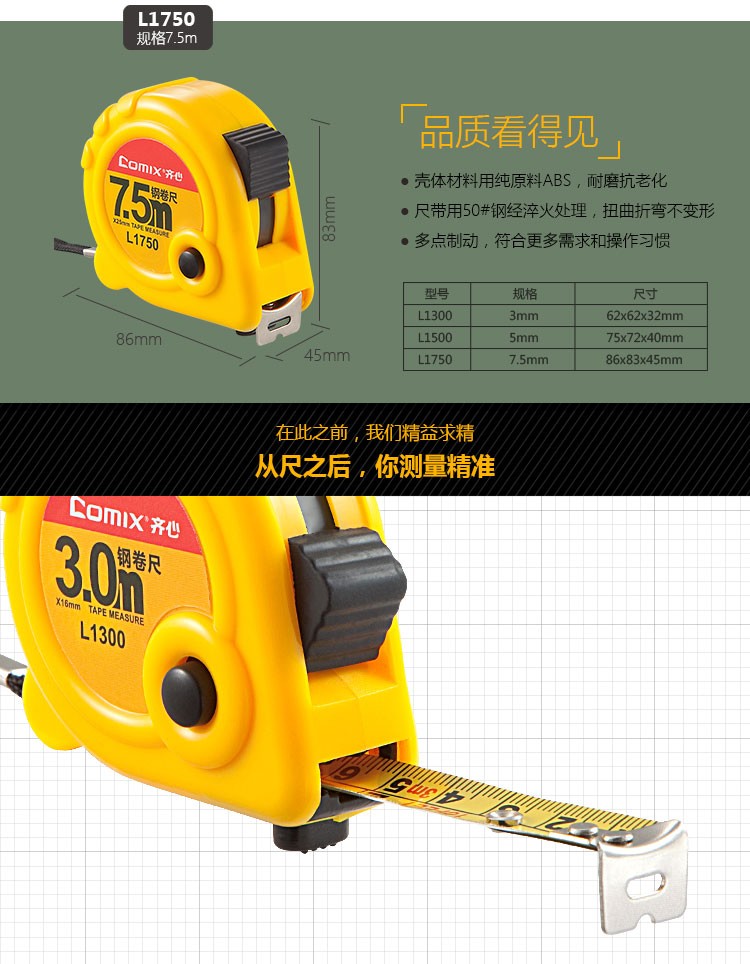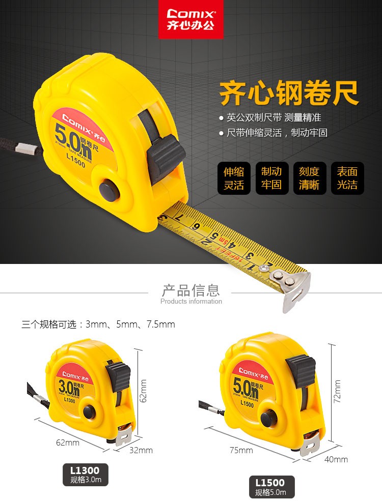 齐心钢卷尺L1300/L1500/L1750