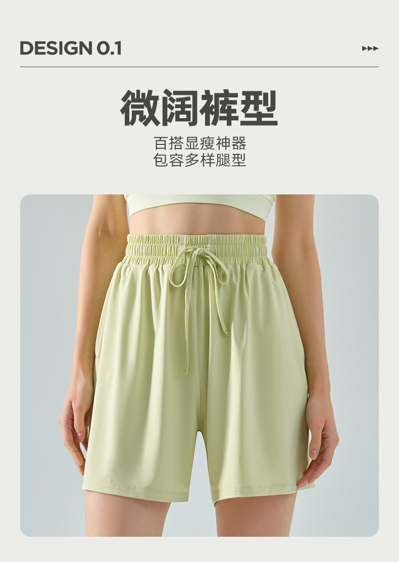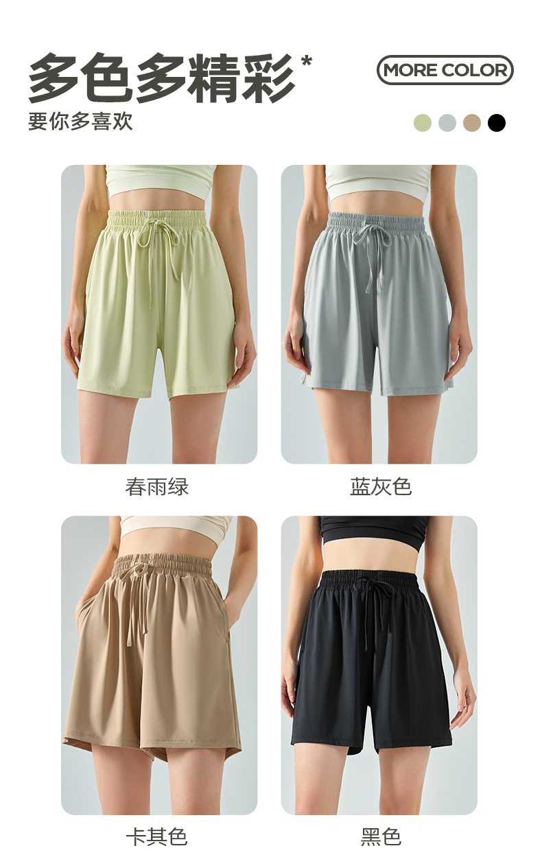 凉感防晒运动短裤女微阔弹力冰丝宽松瑜伽五分裤透气健身骑行短裤