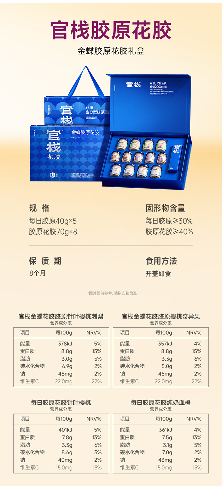 【限时特惠】官栈养肤金蝶胶原花胶礼盒70gx8+40gx5 商品图5