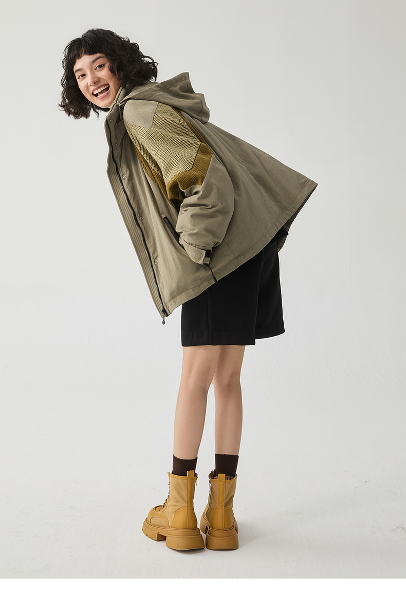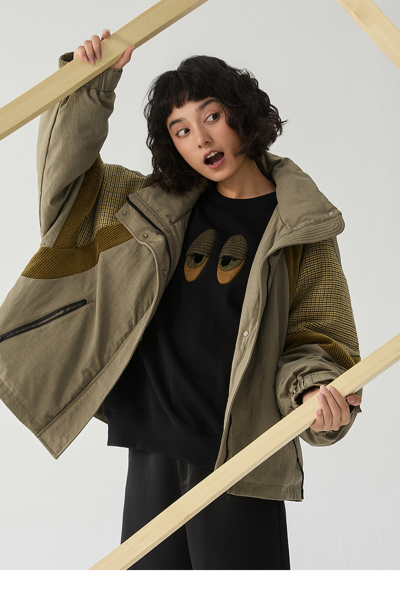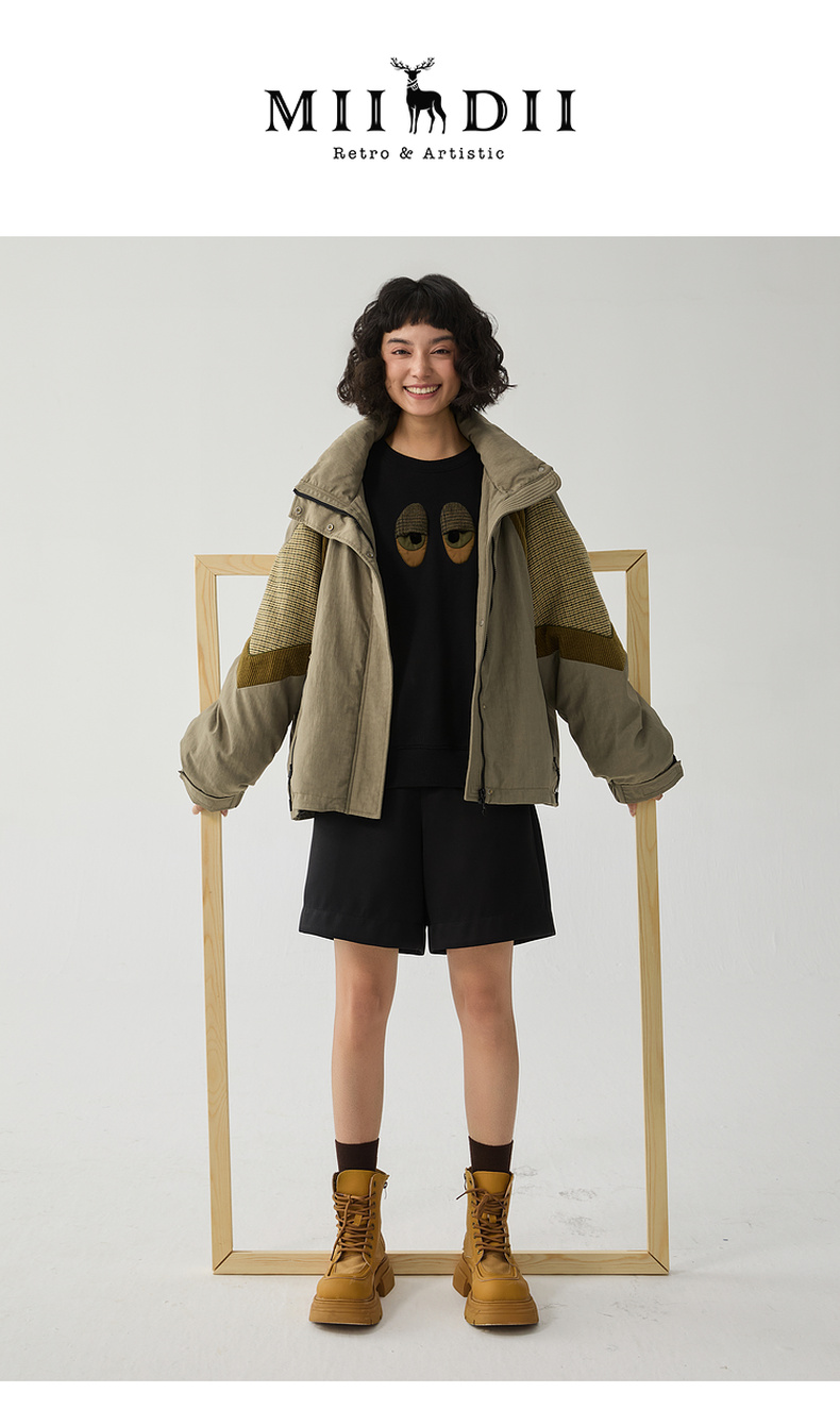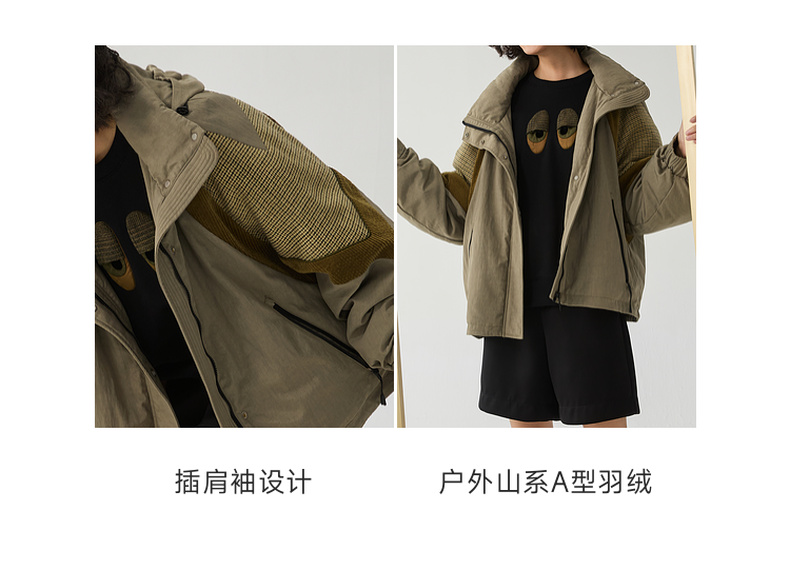 谜底拼接感羽绒服女2024冬季新品复古风连帽短款派克服244MY1533