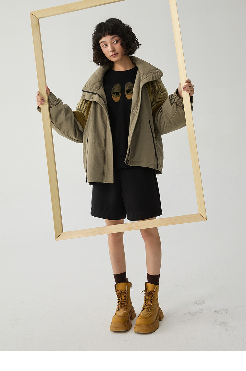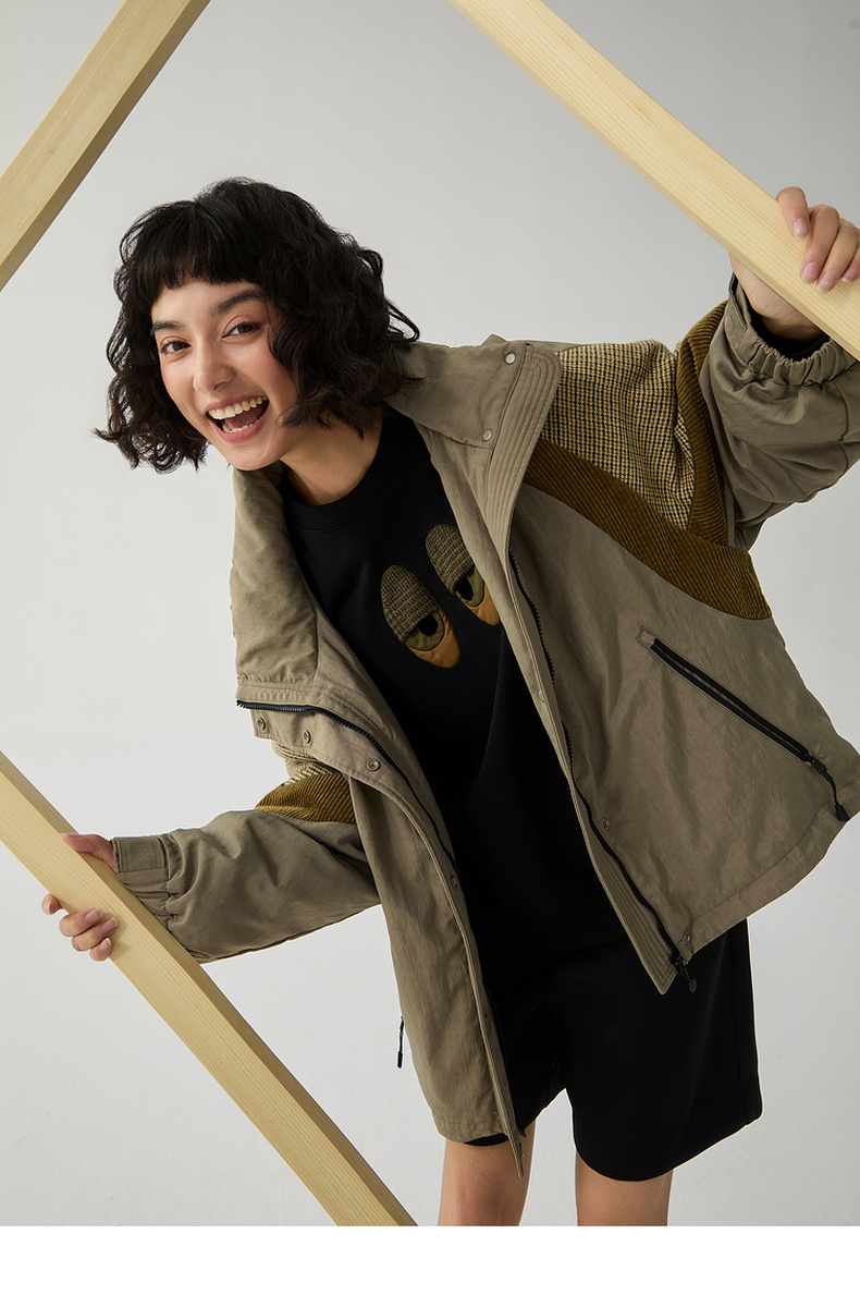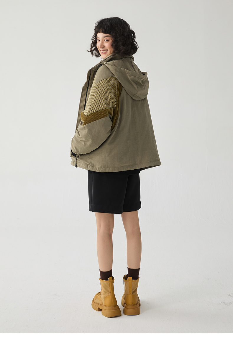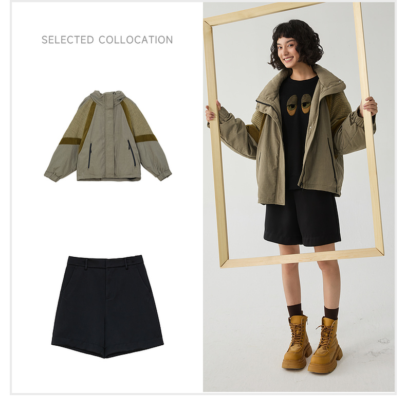 谜底拼接感羽绒服女2024冬季新品复古风连帽短款派克服244MY1533