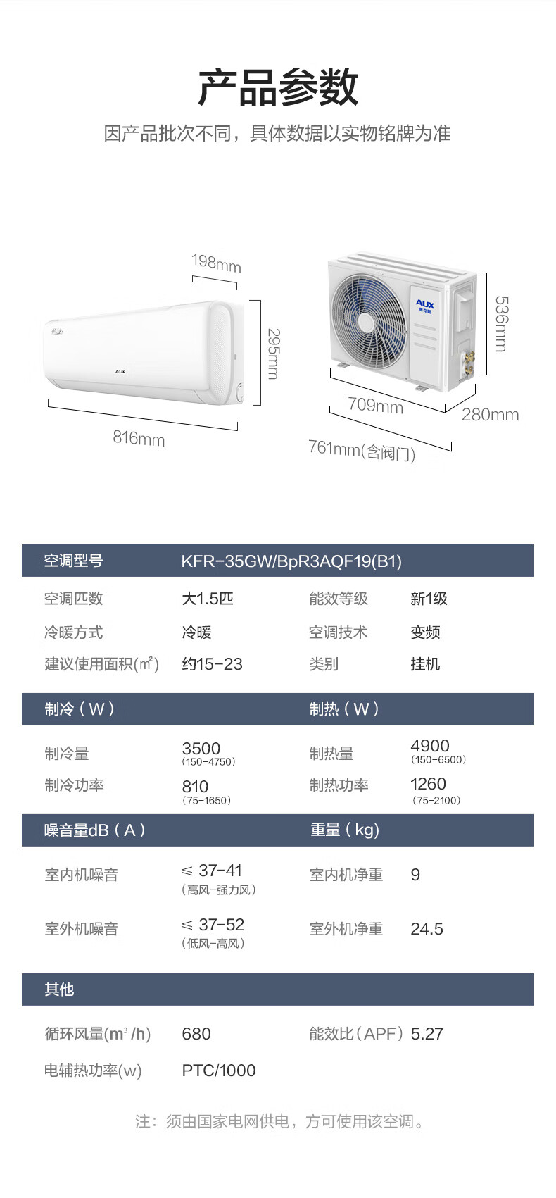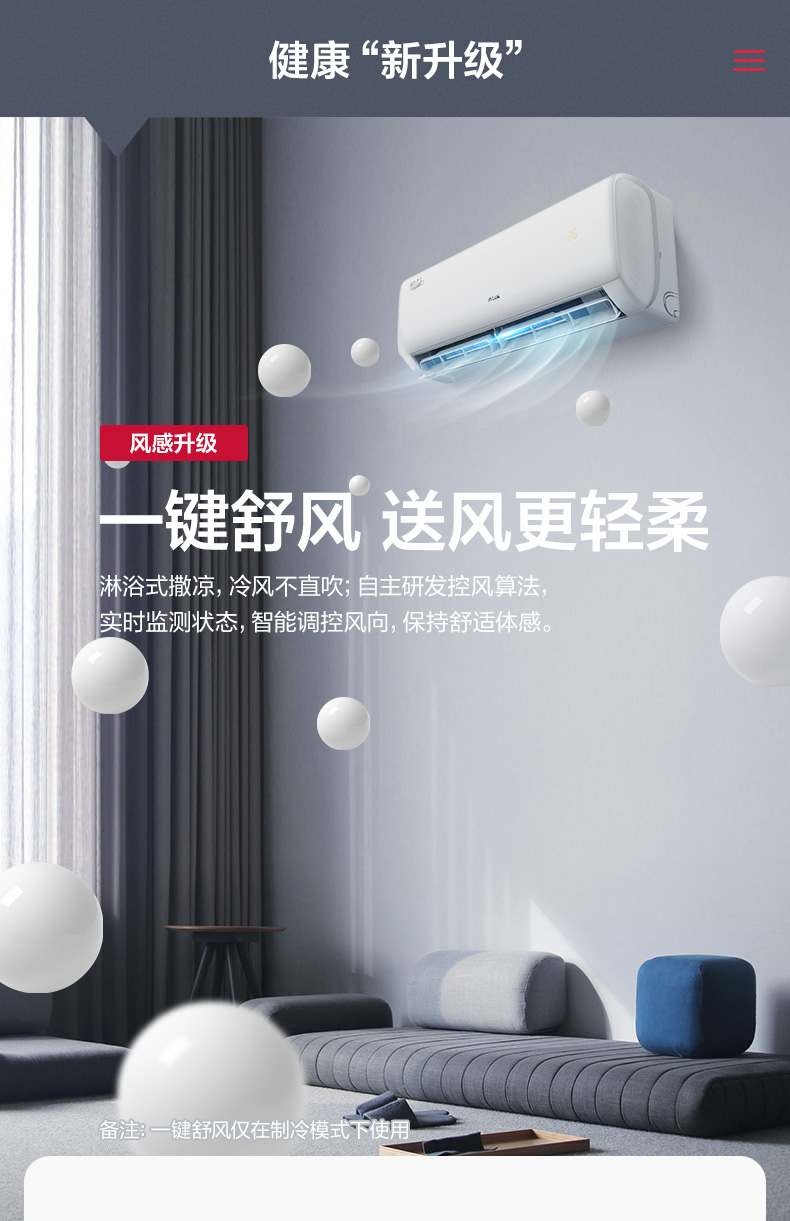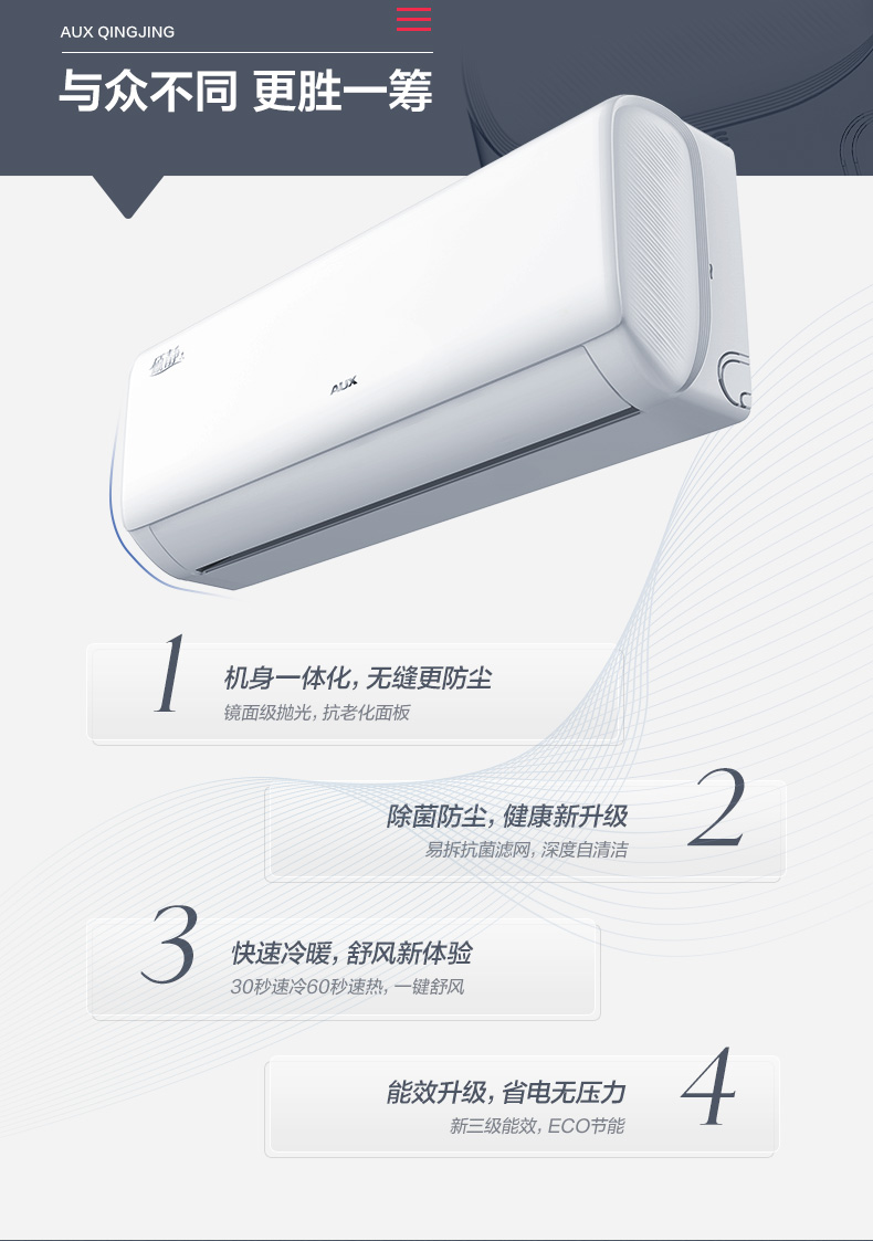奥克斯空调大1匹/1.5匹倾静新能效变频冷暖壁挂式家用空调AQF19