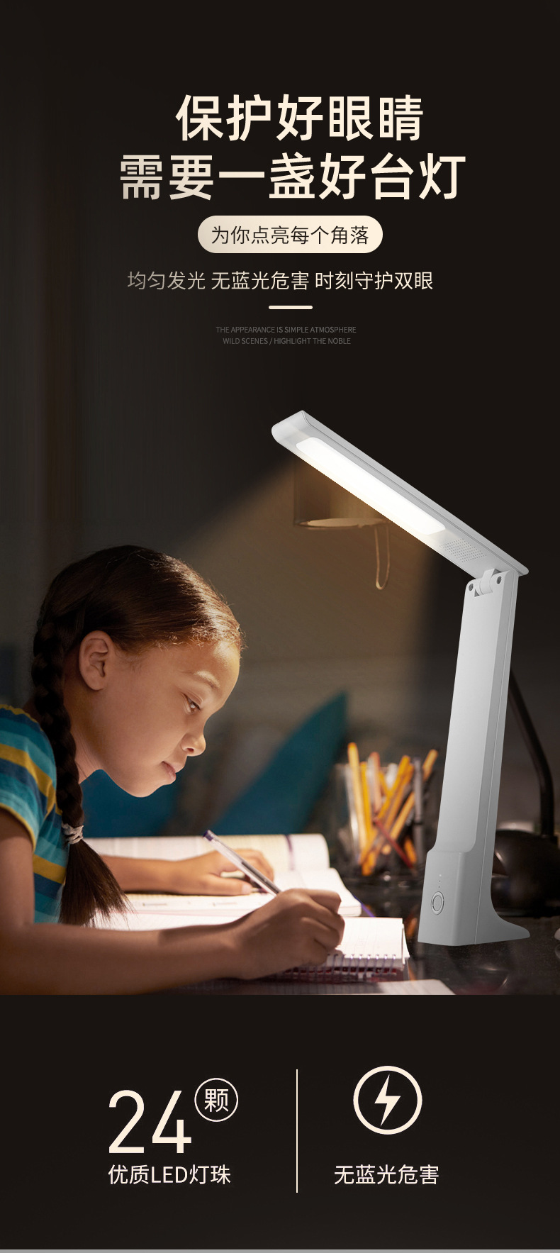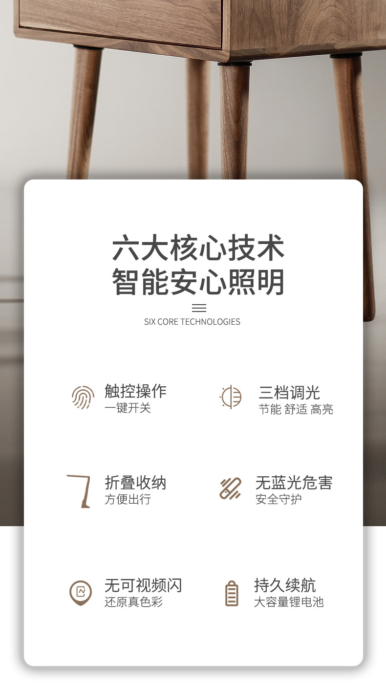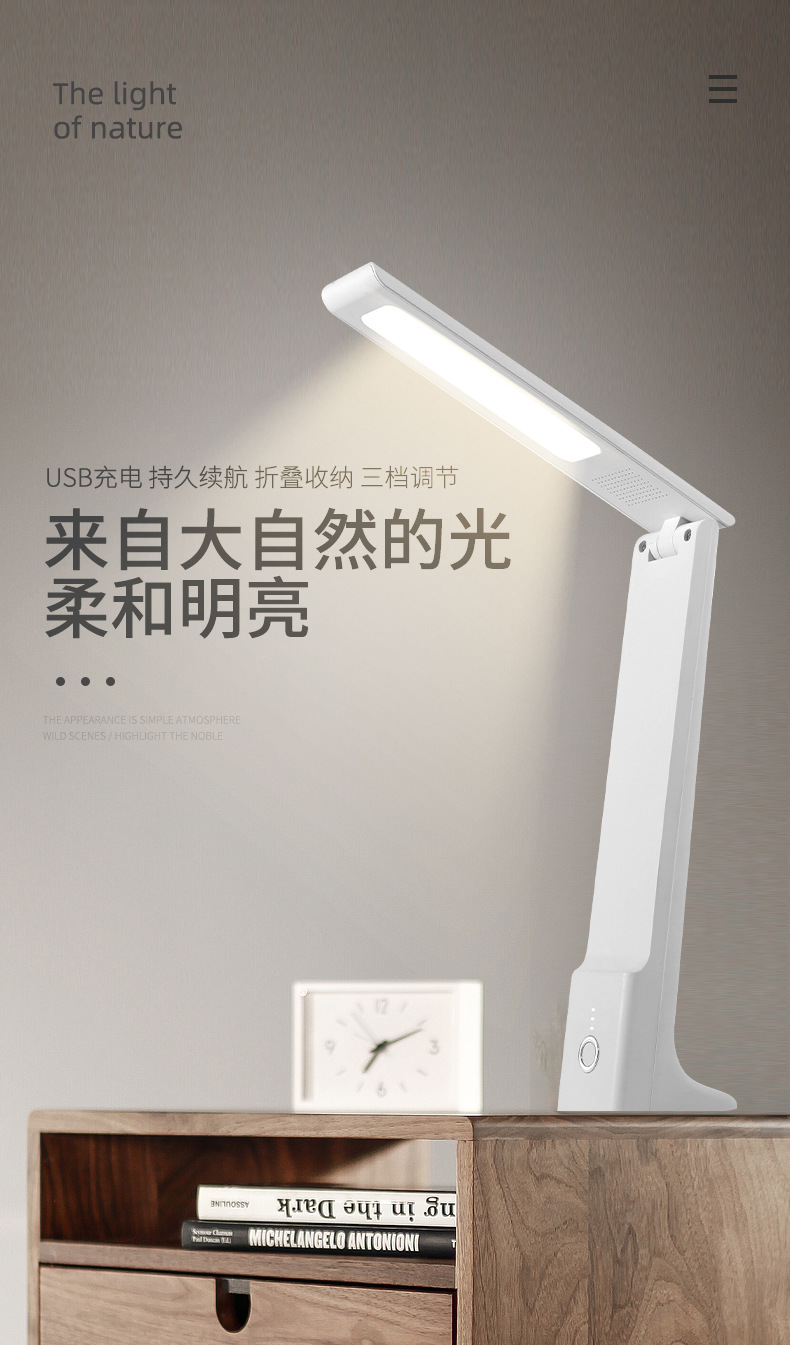 led充电小台灯家用学习宿舍卧室寝室便携式可折叠小夜灯