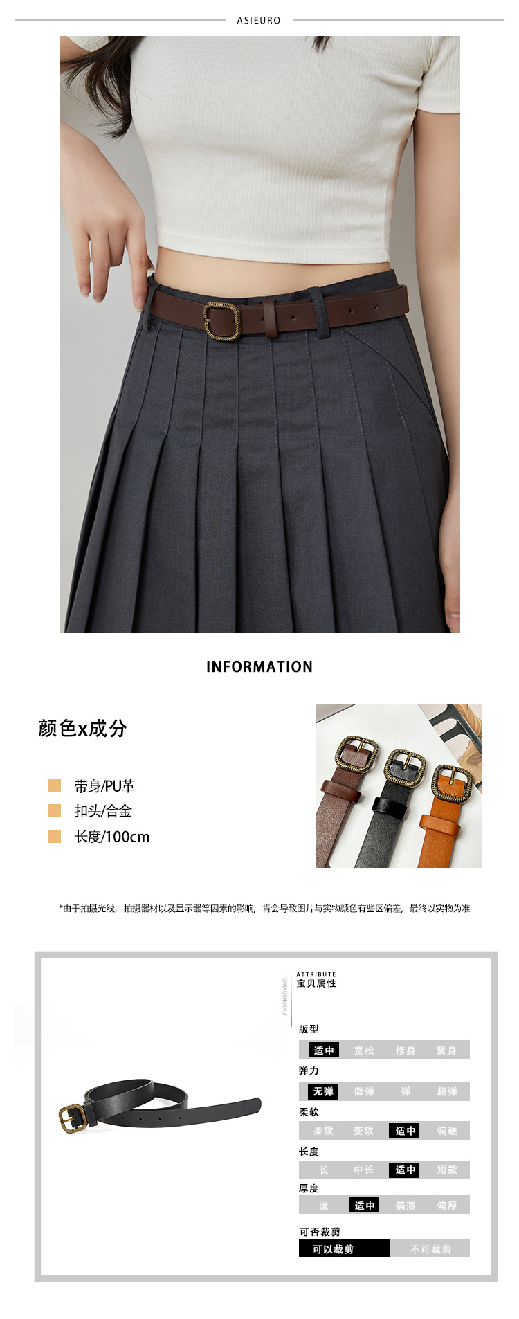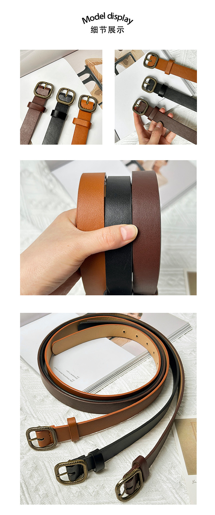 韩国棕色皮带真皮复古腰带女士新款百搭配牛仔裤装饰简约黑色牛皮