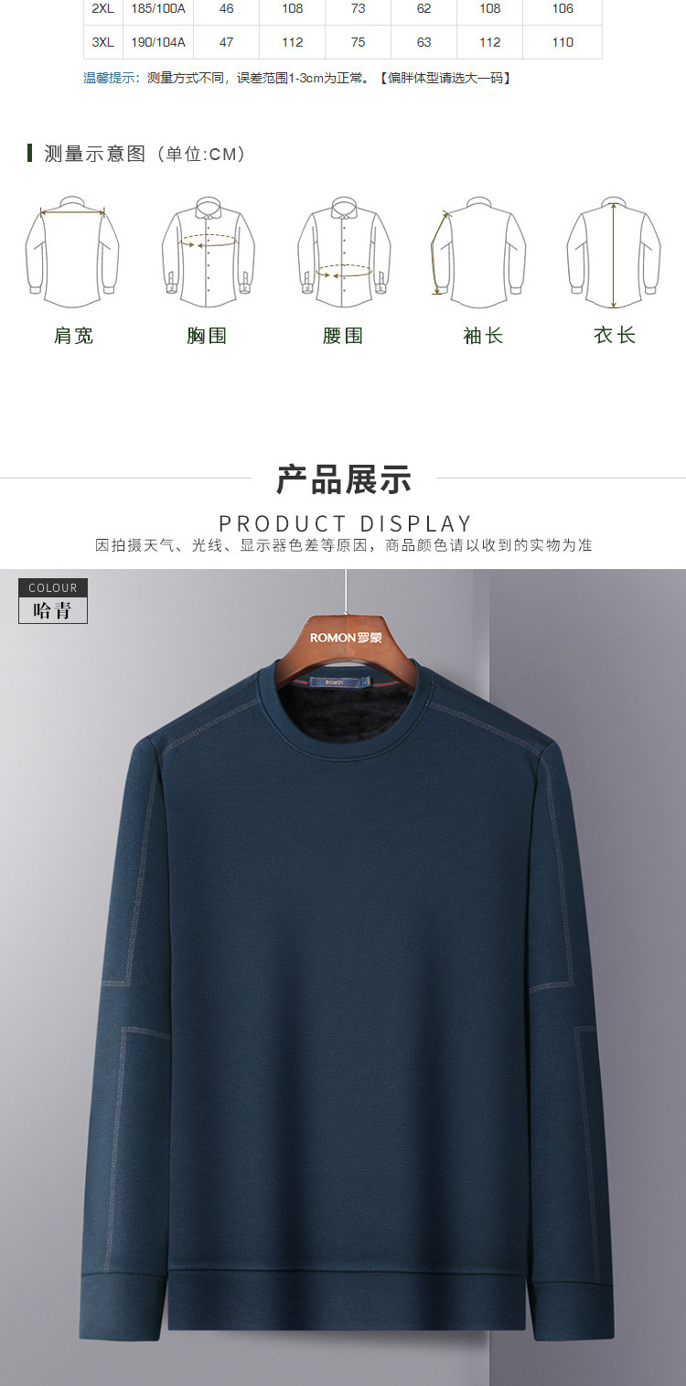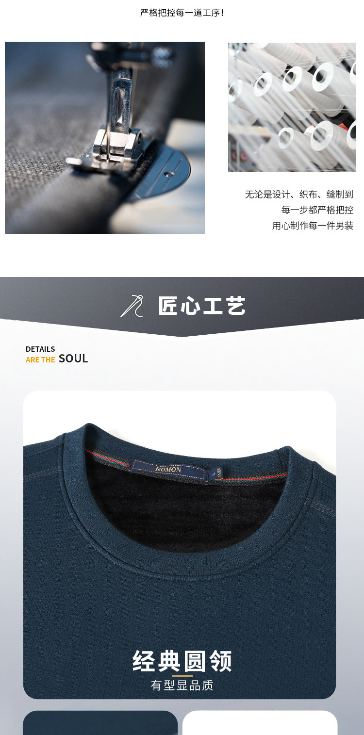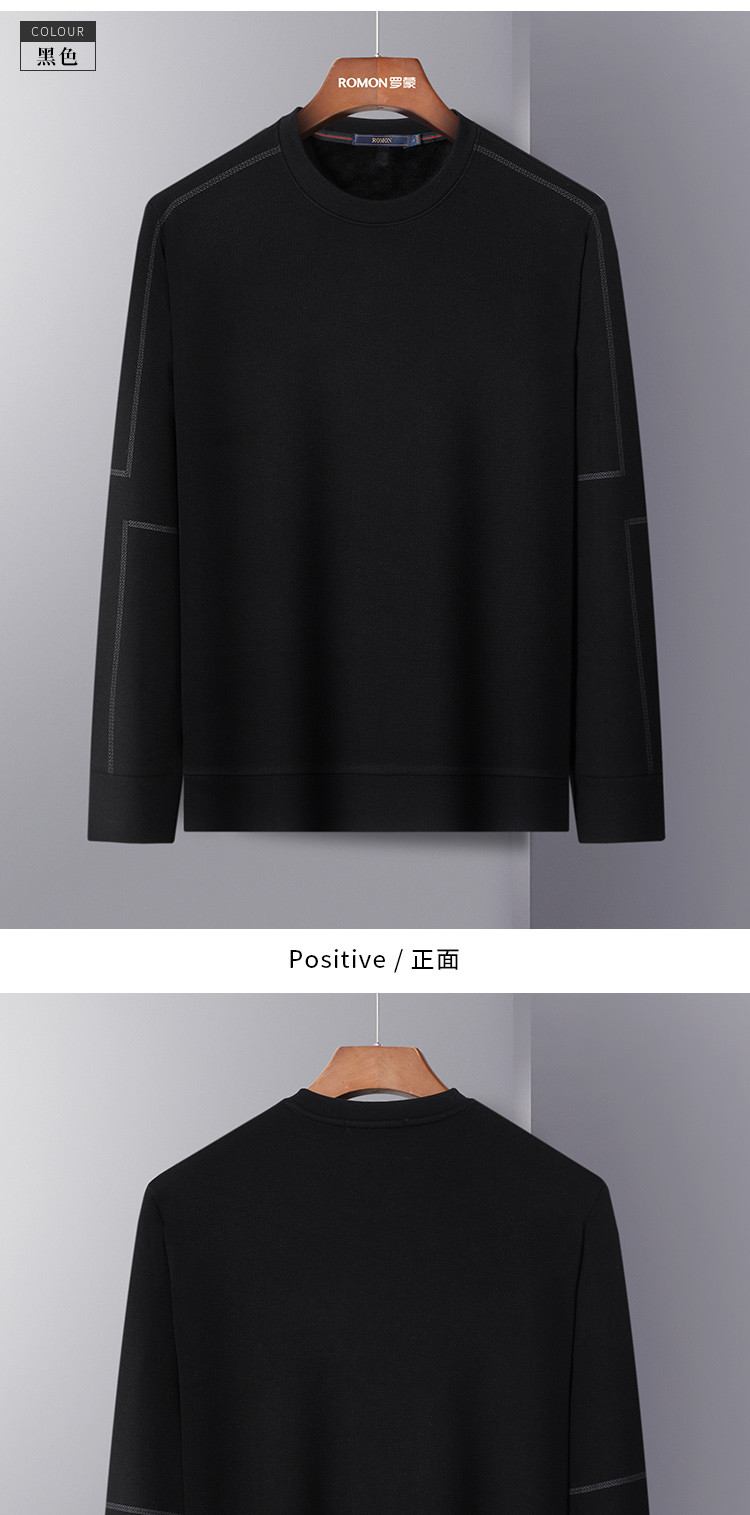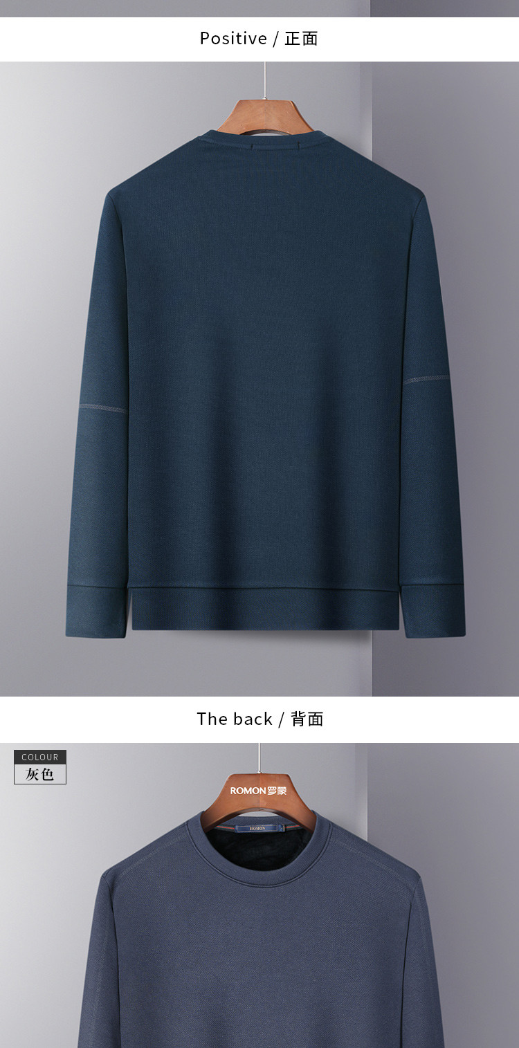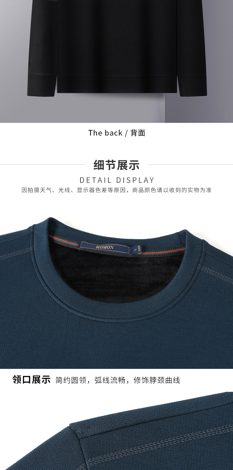【加绒加厚】罗蒙秋冬保暖卫衣男士休闲学院风长袖套头圆领T恤衫