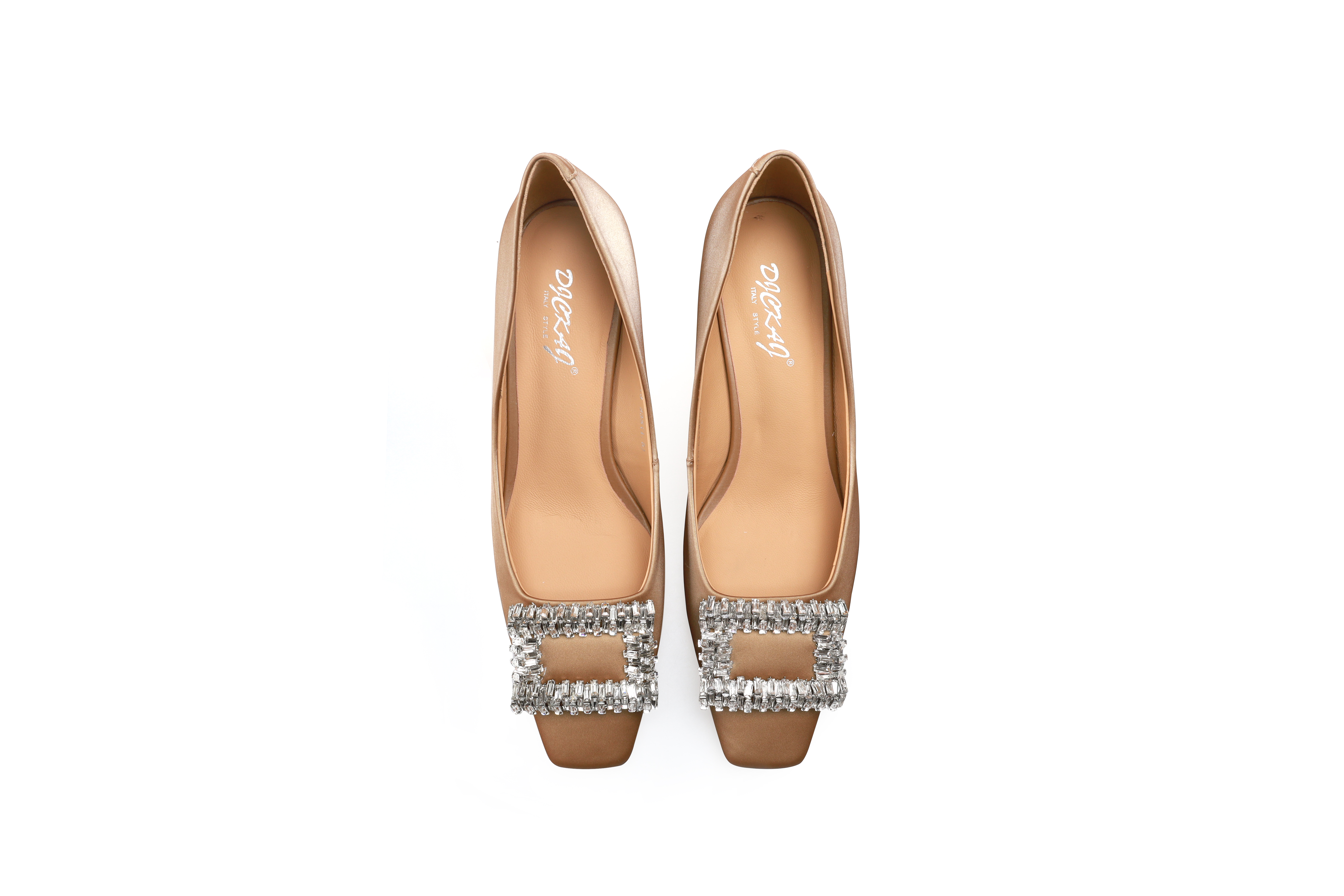 豪麟名鞋奥莱迪嘉女鞋皮鞋丝绸牛皮革DJELA32WP013杏色 原价1960元