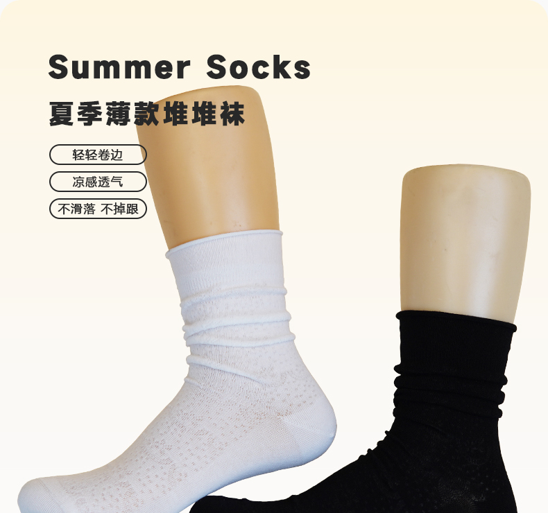 【1双】【59元3双】女士夏季时尚堆堆袜薄袜长筒棉袜百搭女袜纯色袜子【2512501】