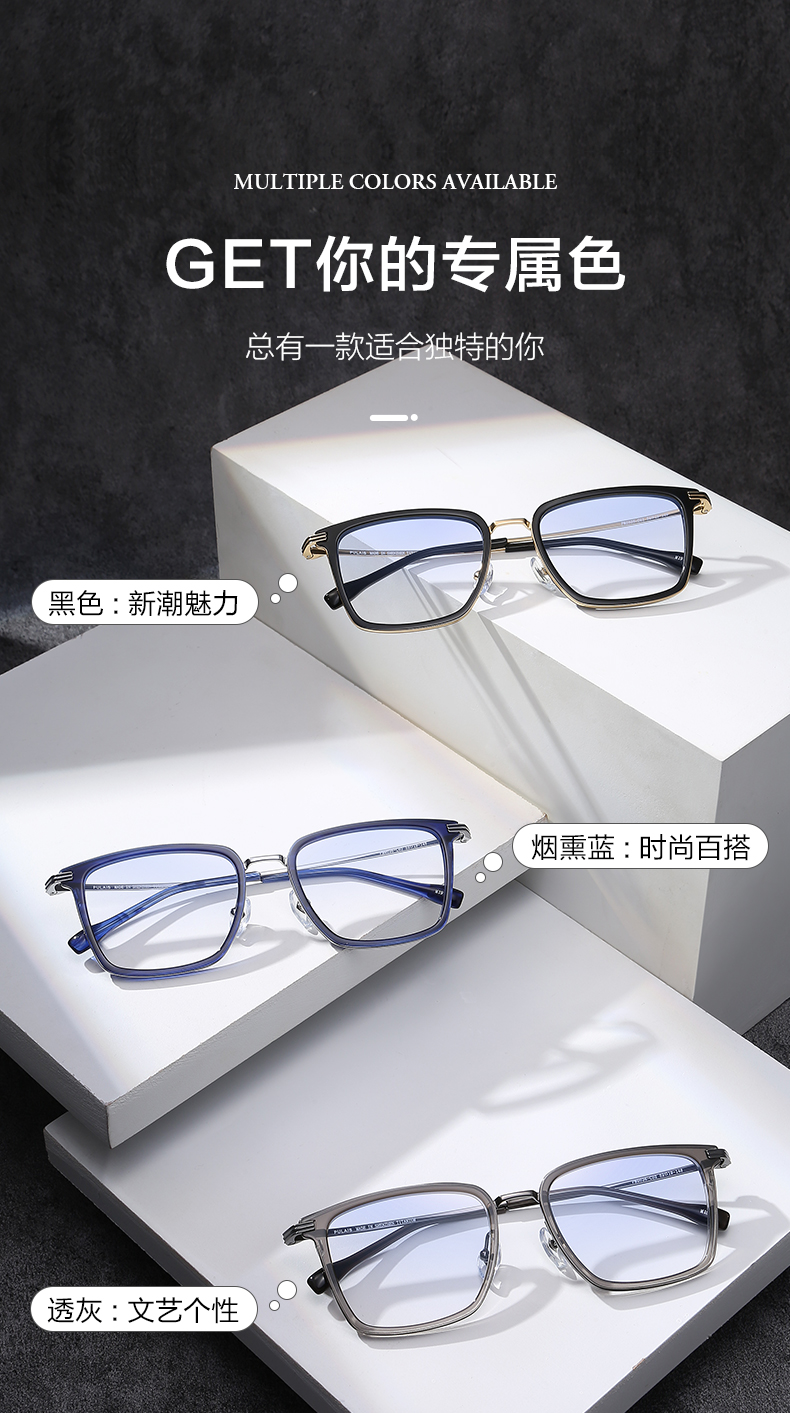 普莱斯光学镜框A6138 经典全框 半钛材质 舒适鼻托 稳固桩头 商务休闲 三色可选