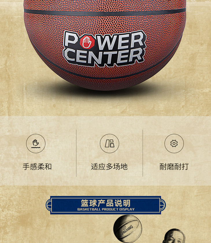 斯伯丁篮球76-889Y Spalding Power Center 7# PU Ball