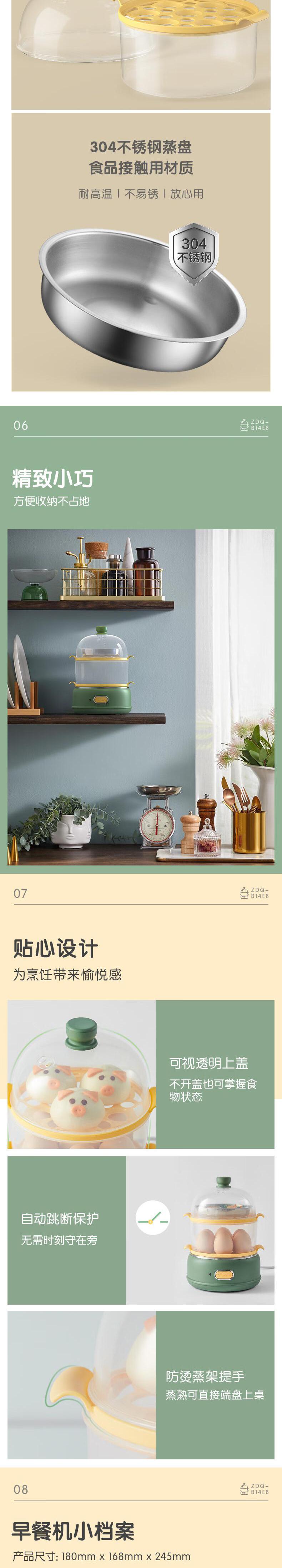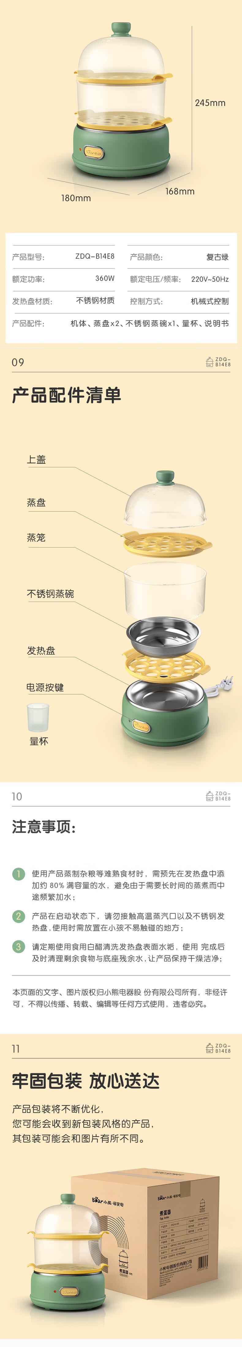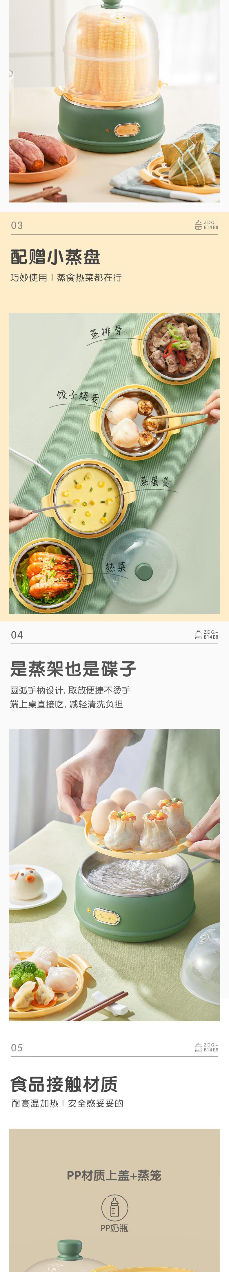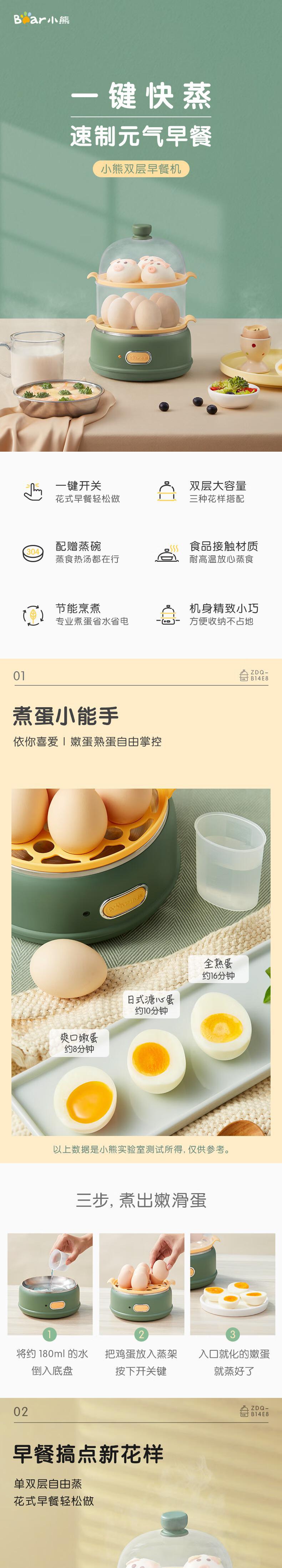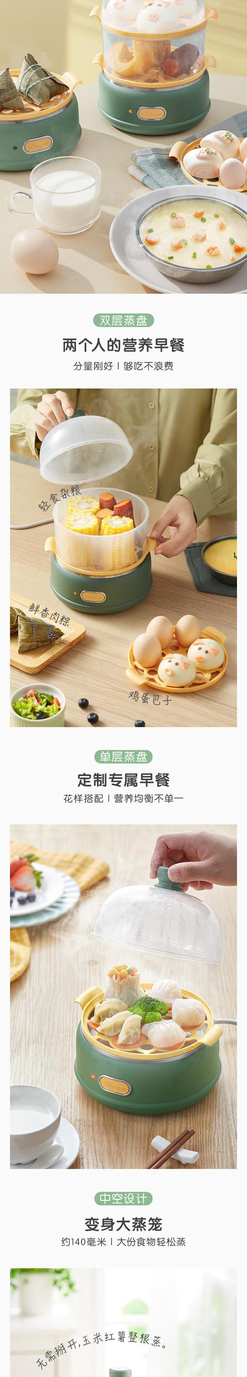 【自营】小熊 多功能双层煮蛋器 自动跳断 透明上盖 防烫提手 ZDQ-B14E8 双层一键操作可做蛋羹蒸蛋自动断电防干烧