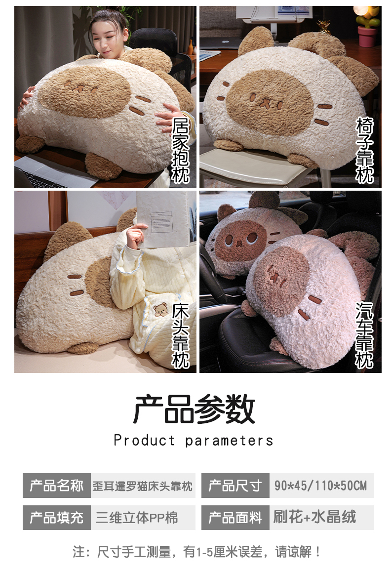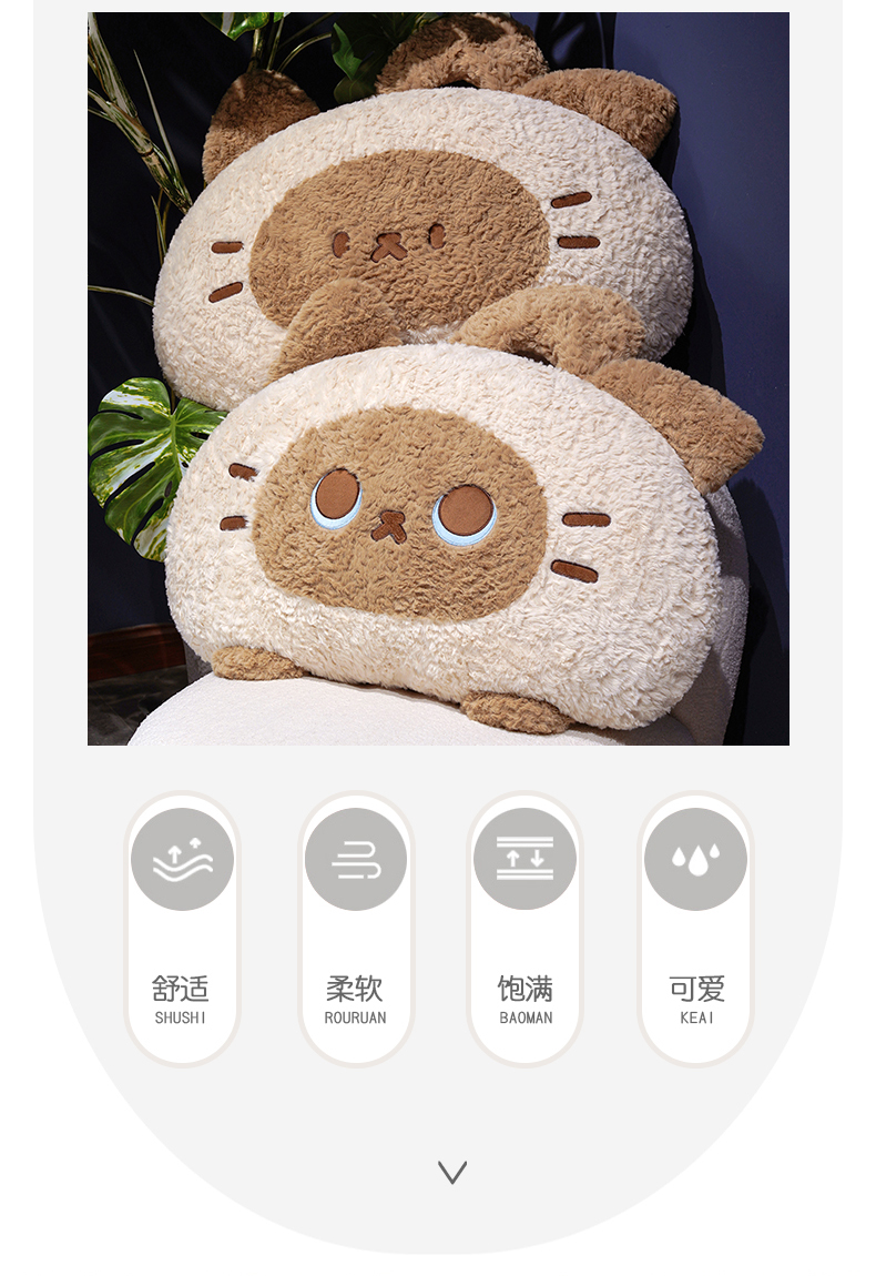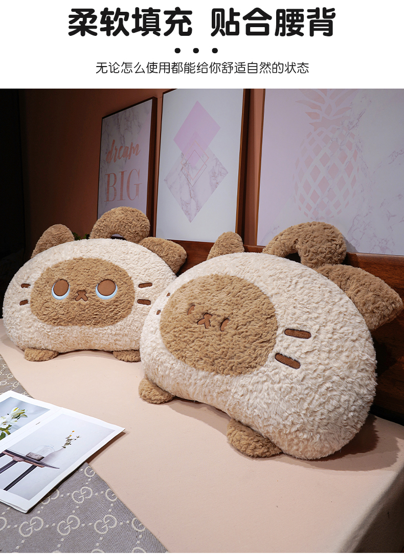 自然醒歪耳暹罗猫月牙床头靠枕QYL