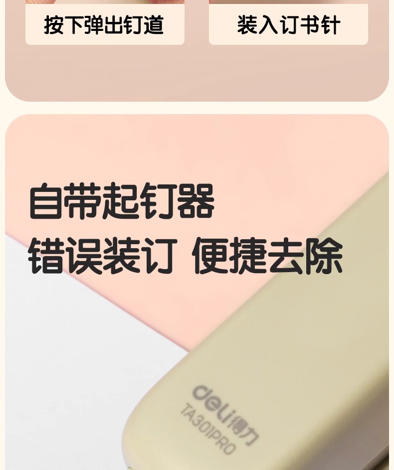 得力订书机TA301PRO创新平钉三合一订书机办公家用多功能钉厚书自带起钉器家用学生用