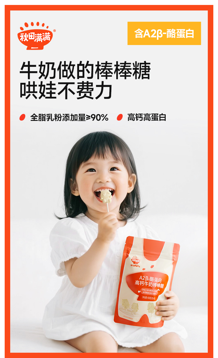 【💰15.9秒杀 折7.95/袋】A2β酪蛋白高钙牛奶棒棒糖40g(5gX8)*2,叠加店铺满赠,不叠加满减和会员折扣