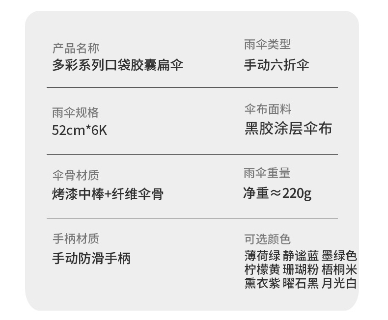 【推荐】南乔多彩系列口袋胶囊扁伞(六色可选)轻巧便携 时尚有型