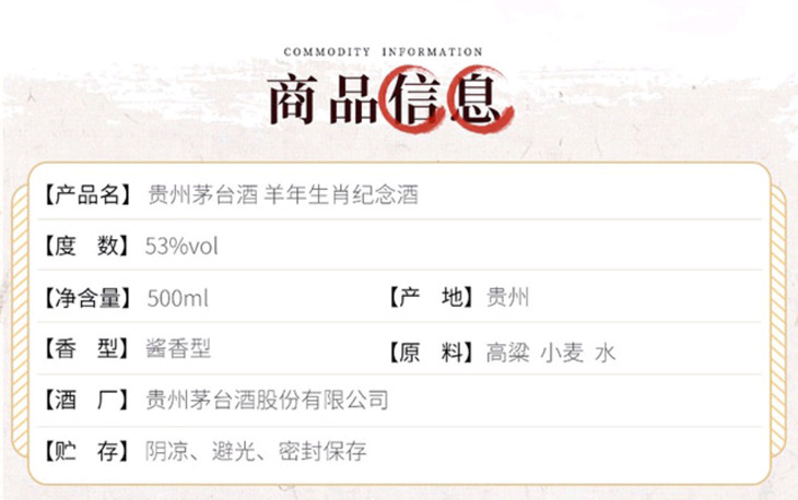 53度茅台羊年生肖酒 500ml*1瓶 (时价)