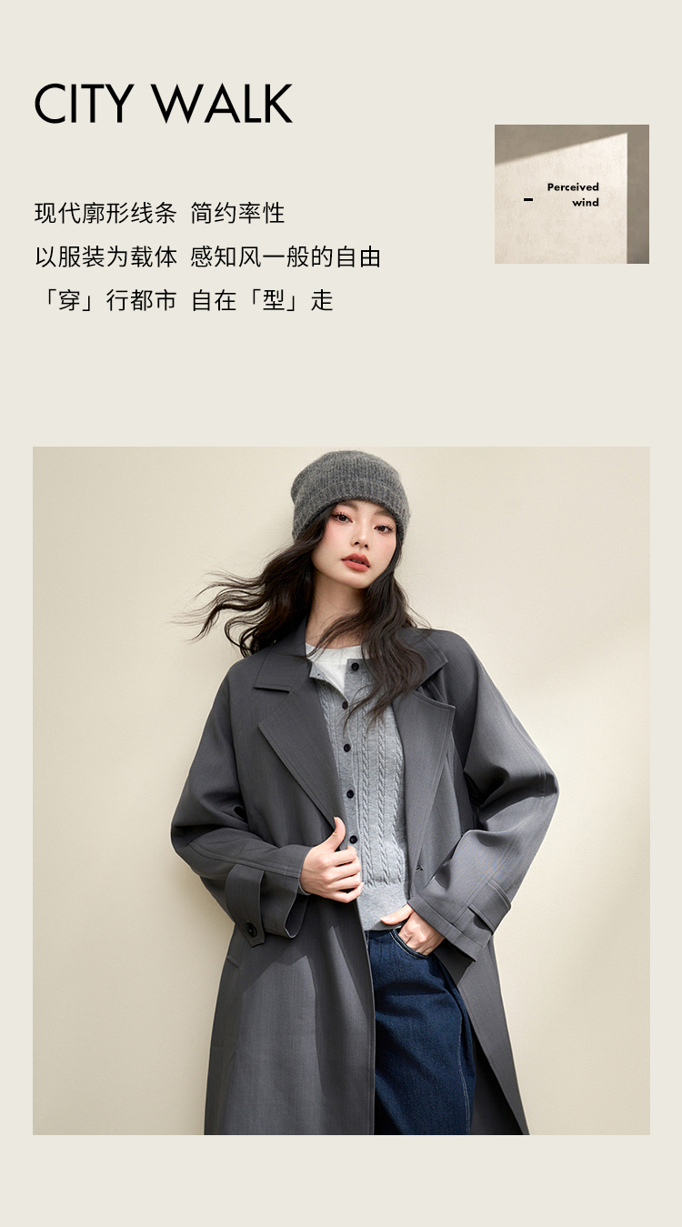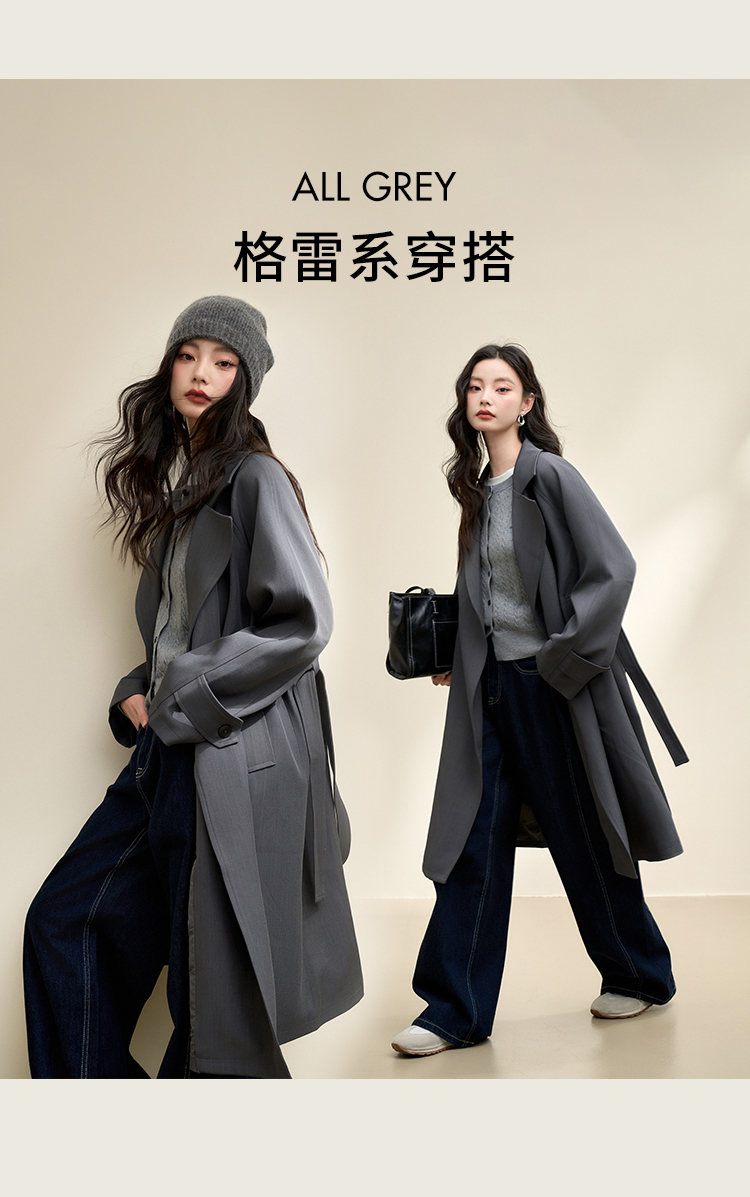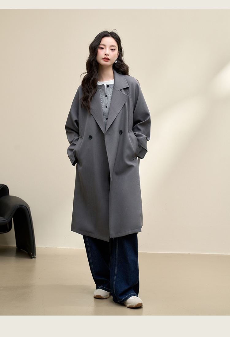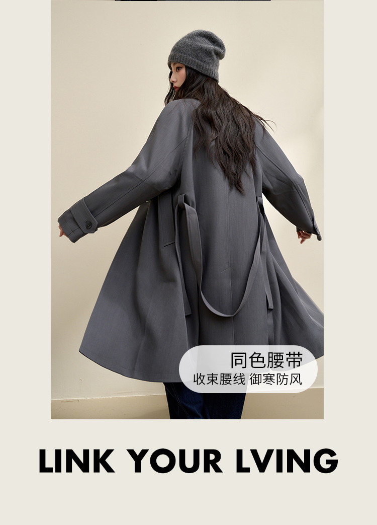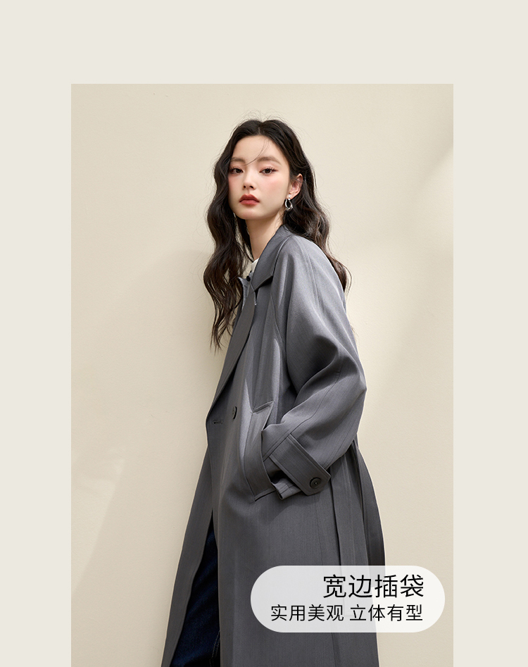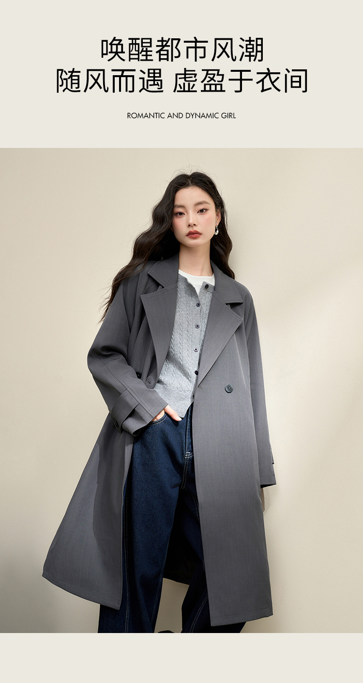 西遇英伦风复古垂感宽松长款风衣女秋季高级感外套V3742710