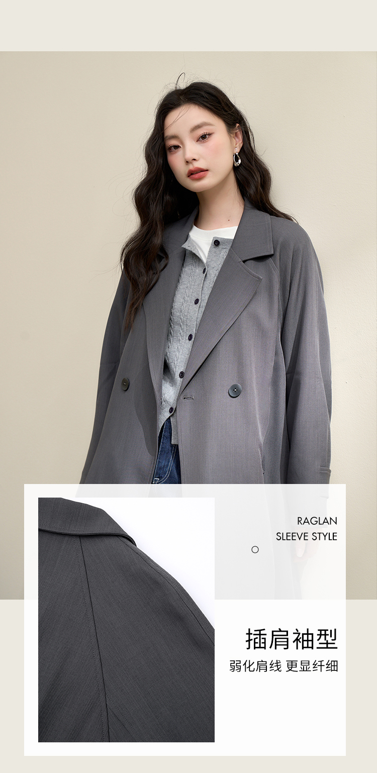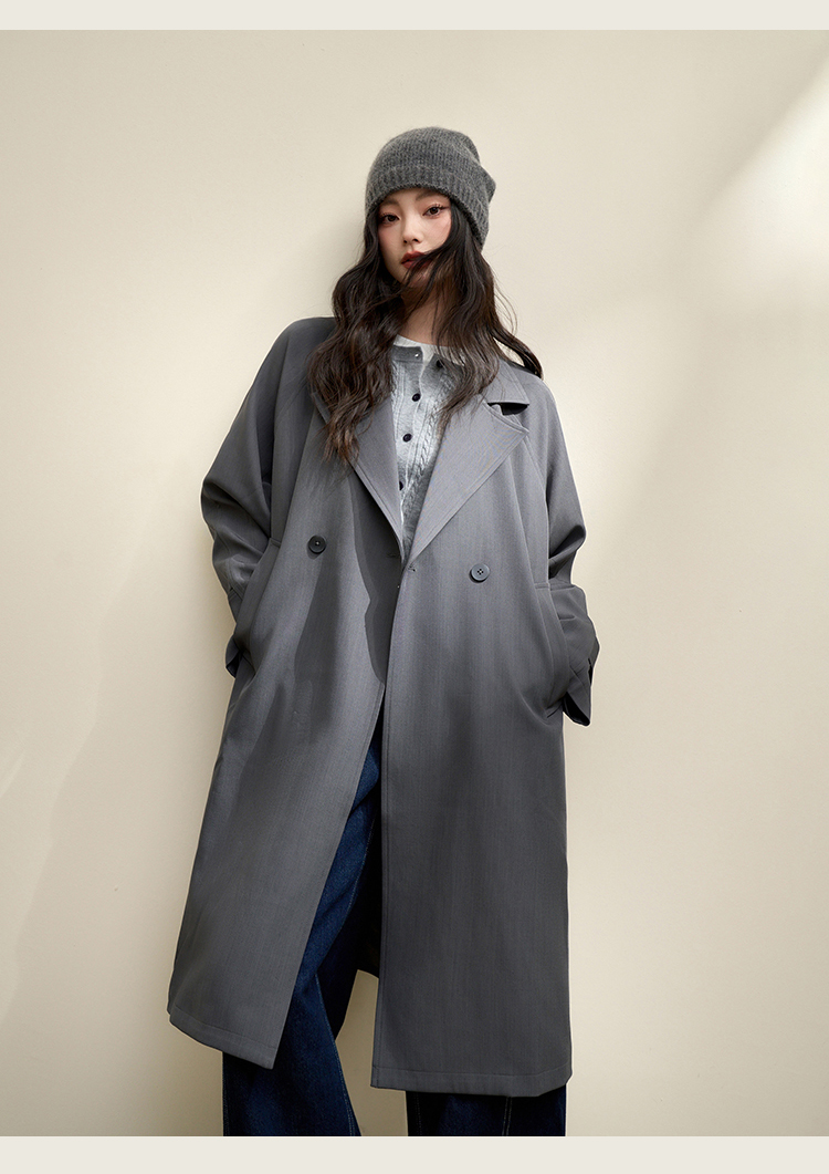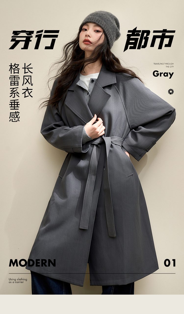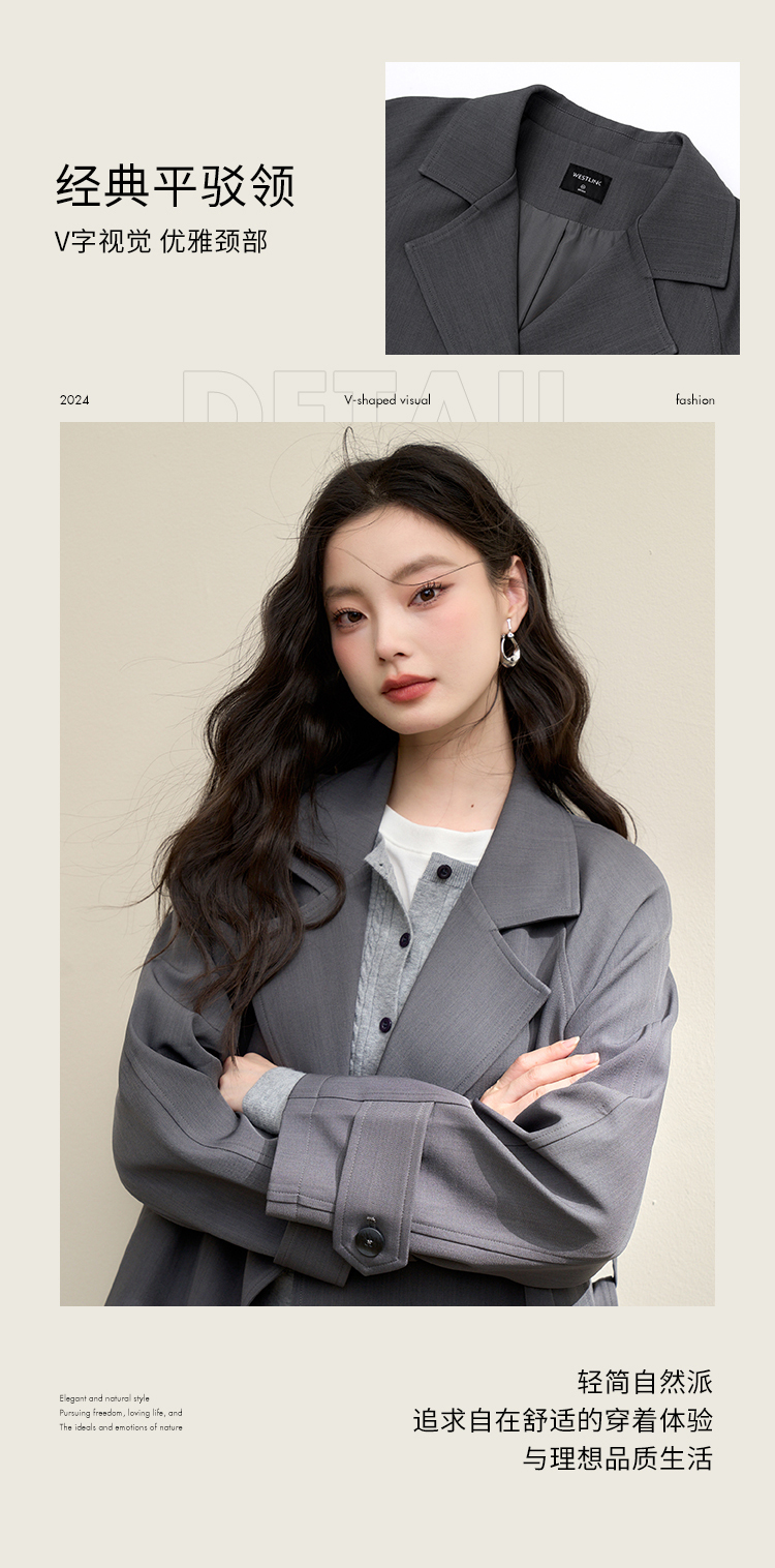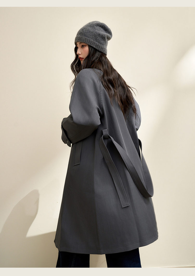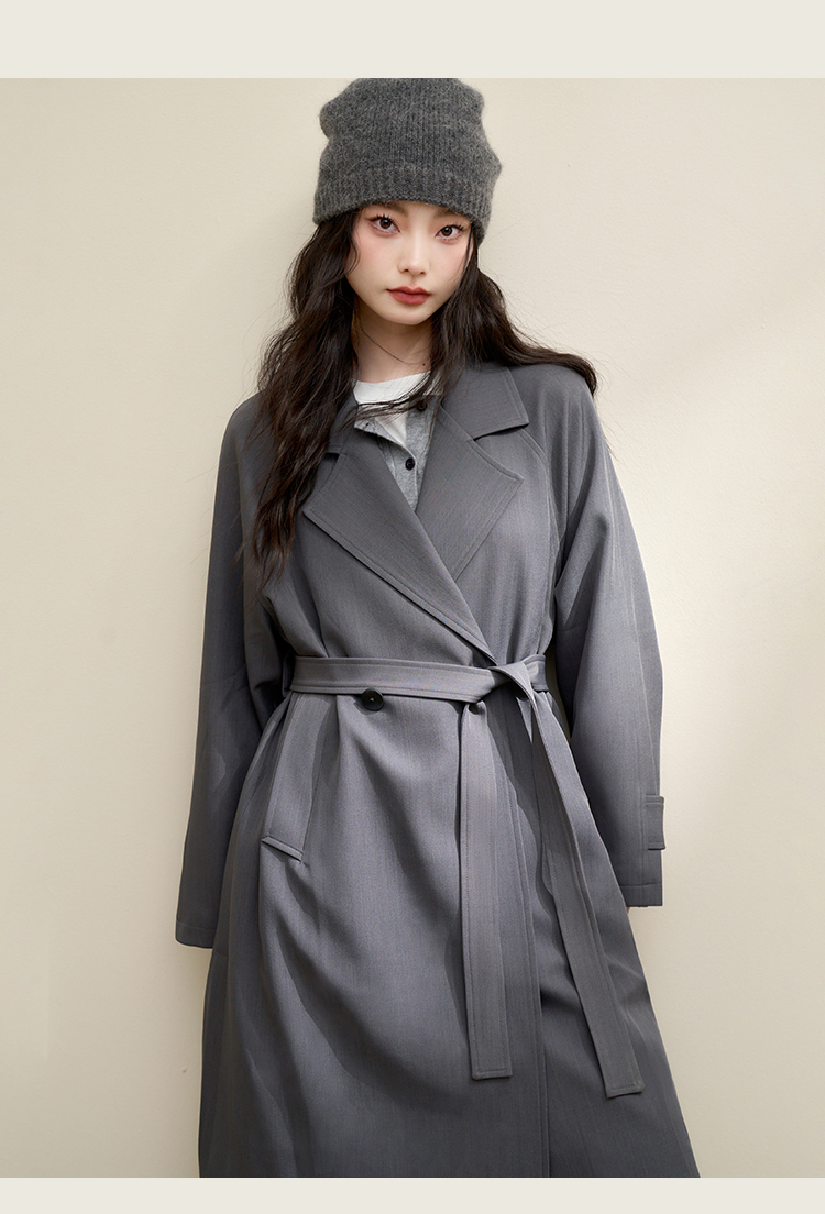 西遇英伦风复古垂感宽松长款风衣女秋季高级感外套V3742710