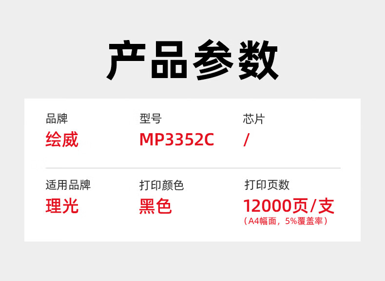 绘威 MP3352C粉盒 单支装 适用理光/RICOH MP3352 2852 2352SP 2852SP 3352SP